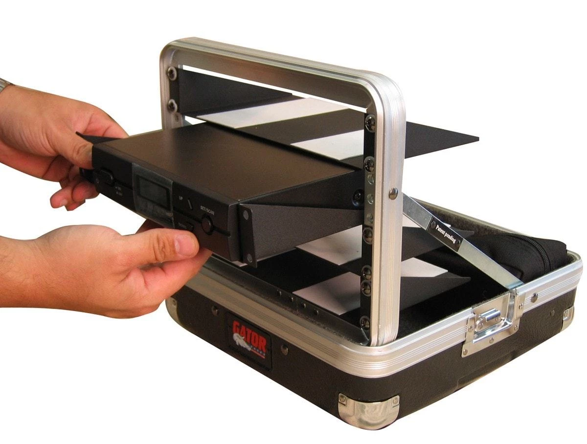ATA Molded Case for 4 Complete Wireless Mic Systems; half rack. Gator Category: Microphone, Wireless System Cases. Weight: 10 lbs.
