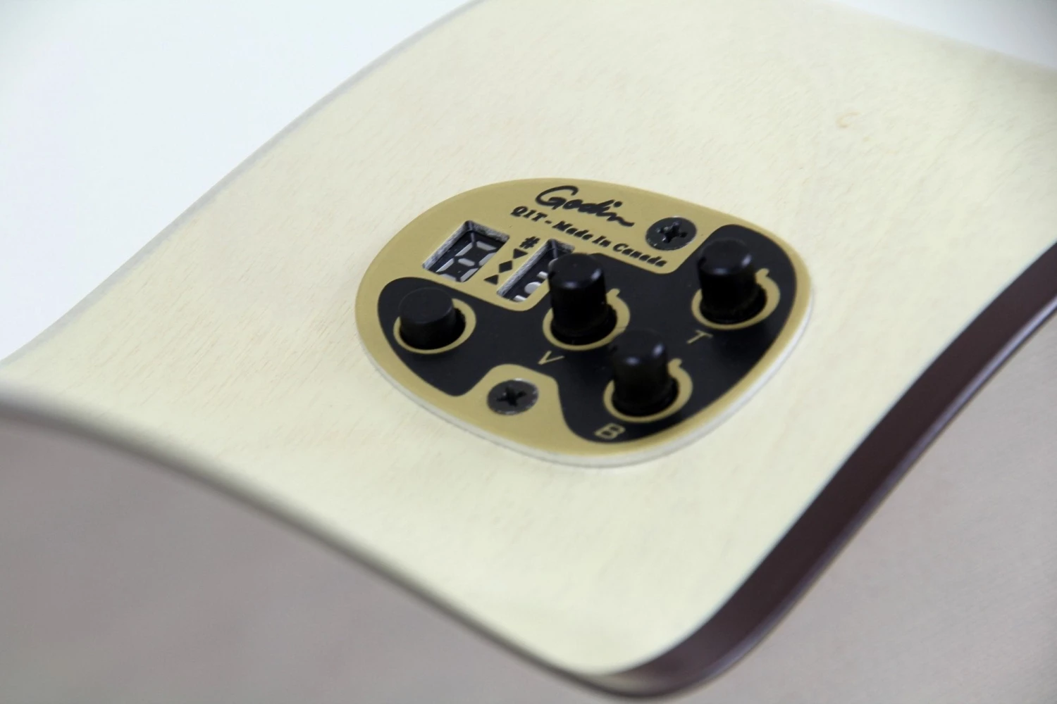 The Legacy is a slightly smaller Concert size acoustic-electric that features a select, pressure tested Solid Spruce top, three layer Wild Cherry back & Sides, semi-gloss finish , and Godin Q1T Electronics. This Legacy is full sized and comfortable to play on-stage or in the living room. Balanced lows with shimmering mids make for a tone that is full and clear. Great for finger-picking or strumming.