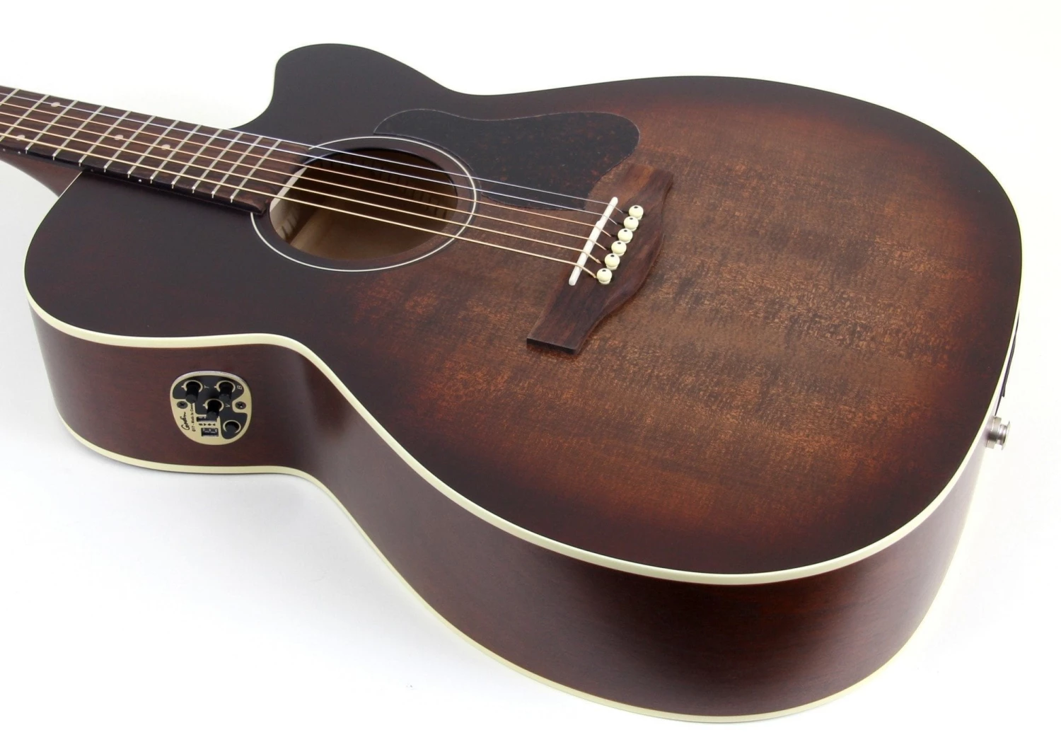 Simple and effective, a transducer pickup works with eq controls to reproduce a natural tone that is easy to dial in. Built in tuner with auto shut-off is easy and convenient with-out distracting from the aesthetics of the guitar.