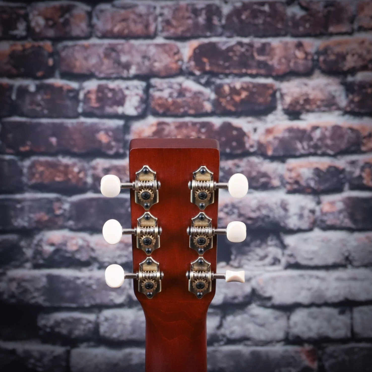 - Open-gear 18:1 antique brass tuning machines