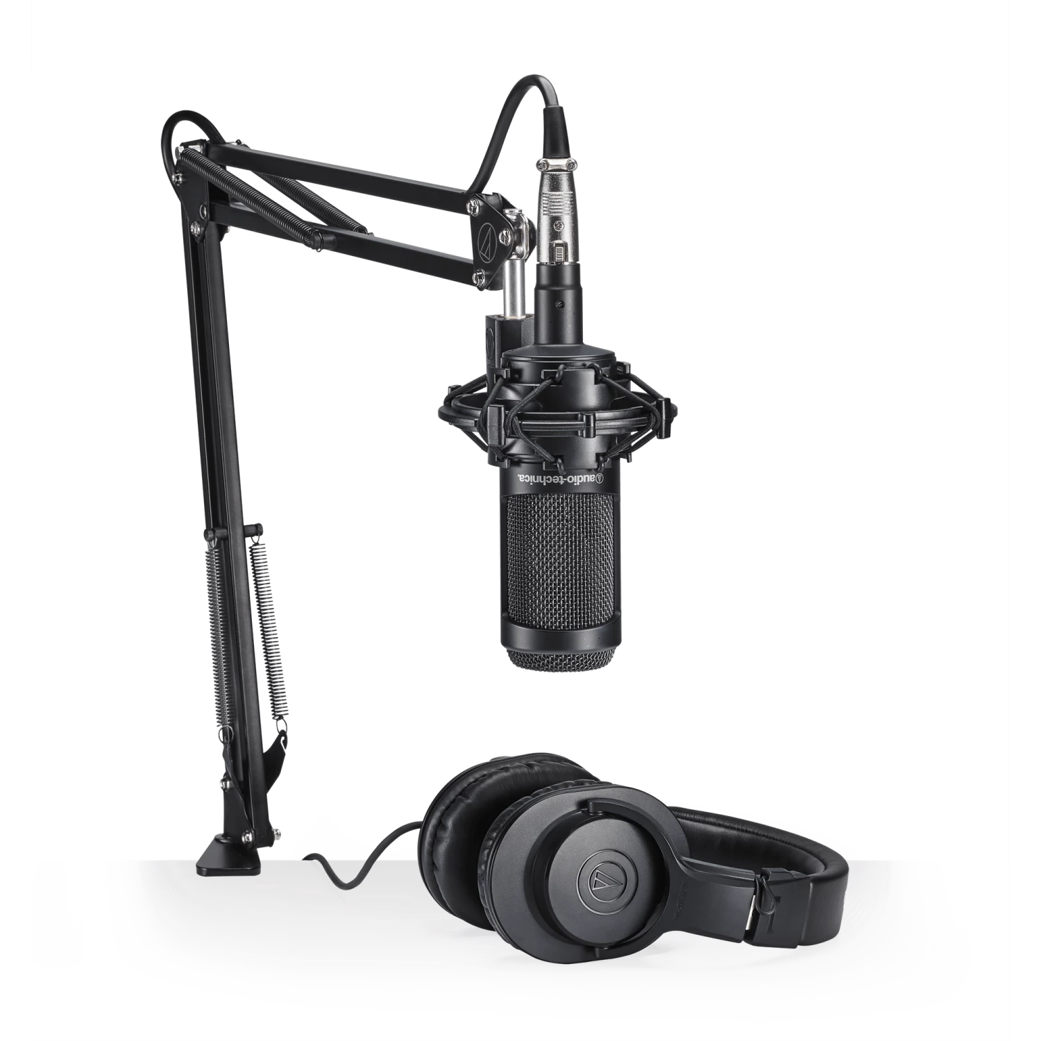 The AT2035PK vocal microphone pack is designed for streamers, podcasters, and other content creators who need a versatile, easy-to-install, easy-to-adjust boom microphone setup. The pack includes an AT2035 cardioid condenser microphone, a pair of ATH-M20x professional monitor headphones and a studio boom arm threaded with a XLR cable.