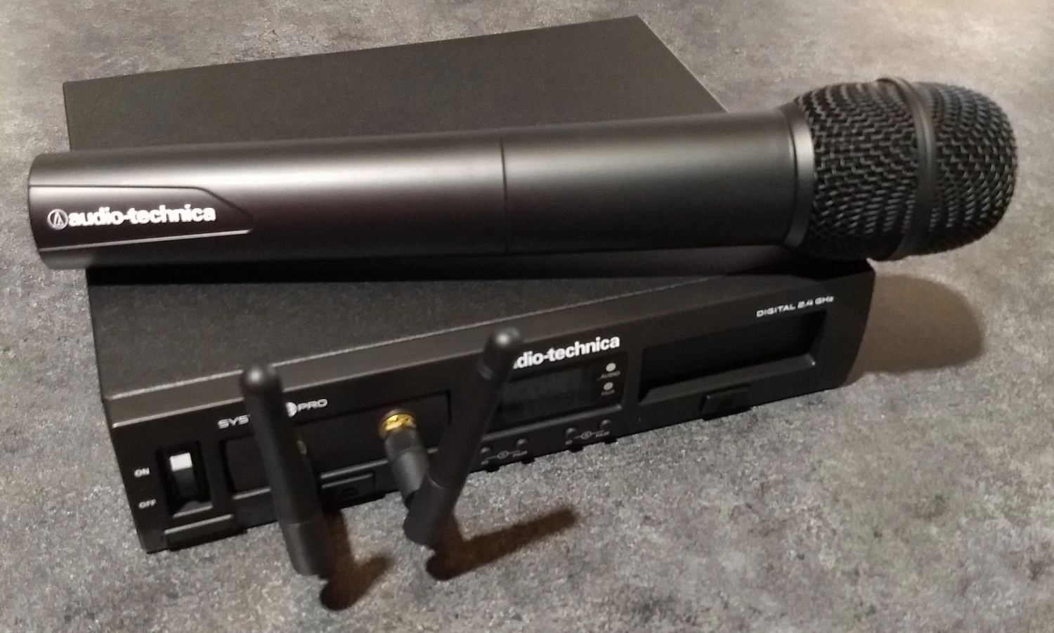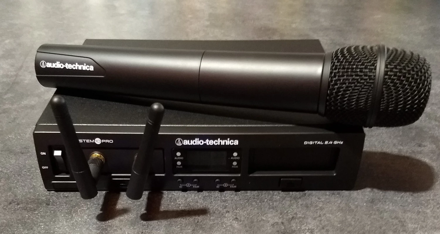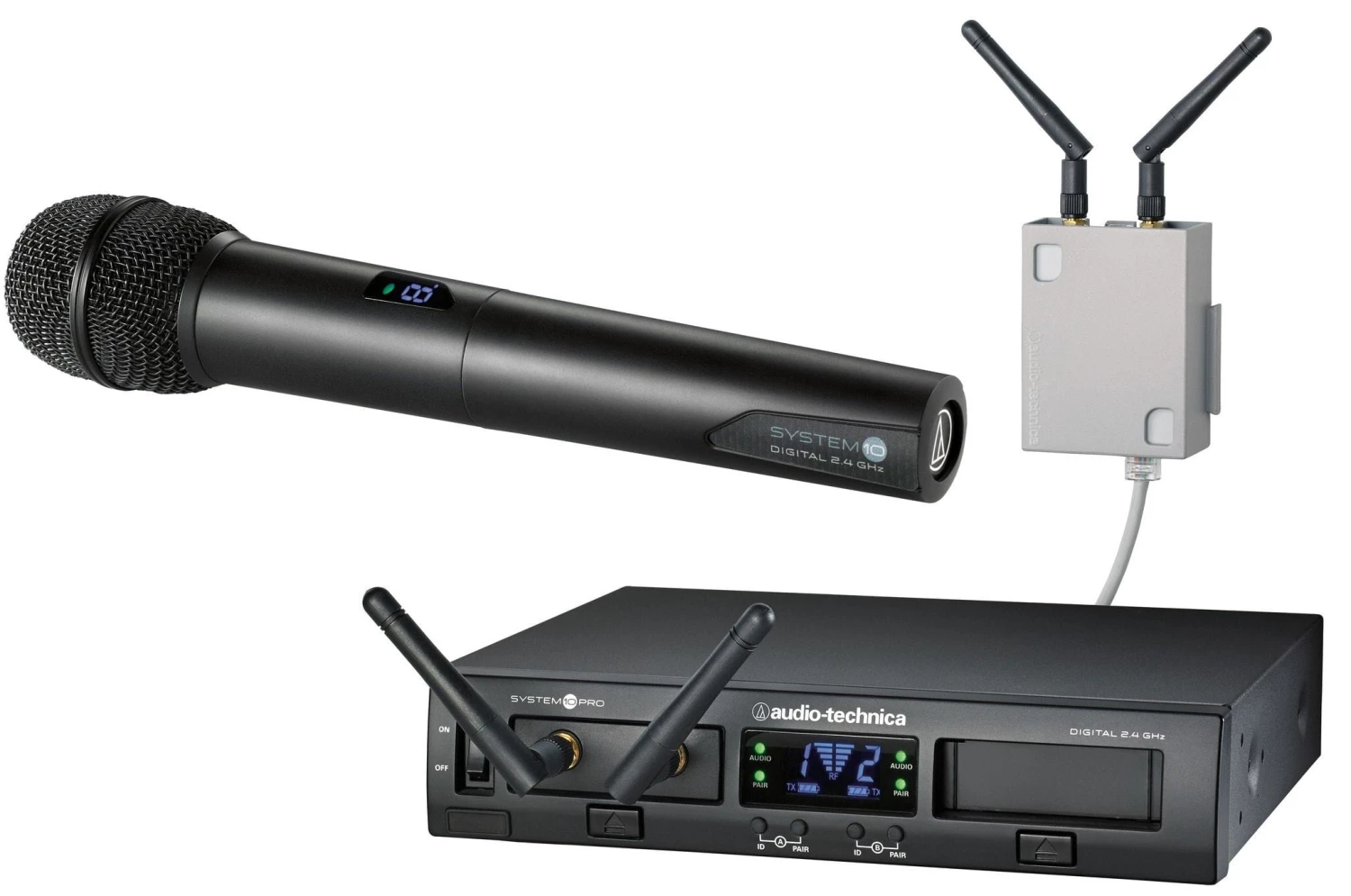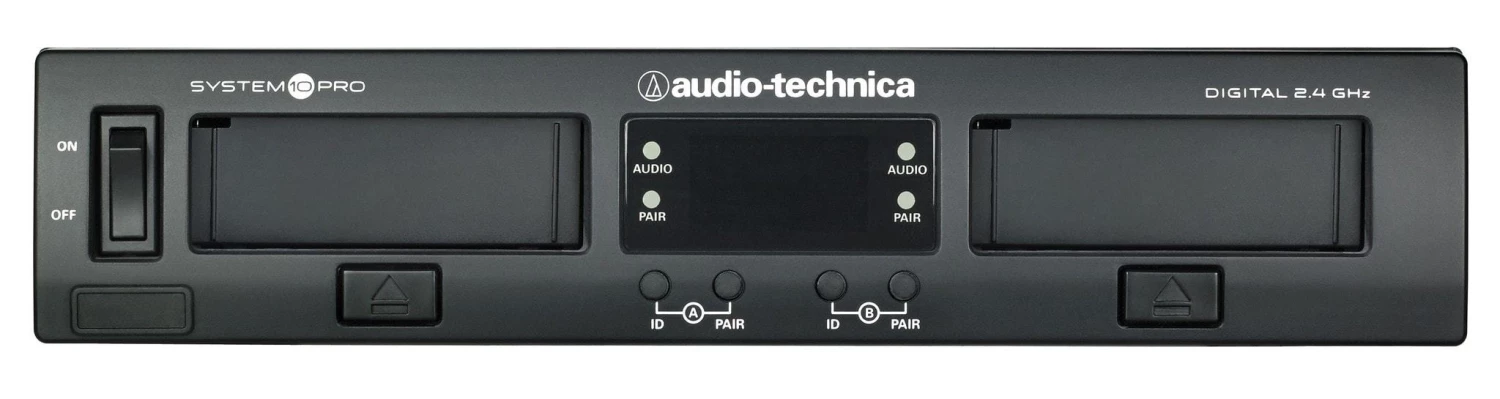 Audio-Technica’s System 10 PRO Rack-Mount digital wireless system provides the same interference-free operation in the 2.4 GHz range (outside TV bands) as the original System 10 wireless system but with expanded features and versatility. The durable half-rack chassis is equipped to house two receiver units that can be operated locally or released from the chassis and mounted remotely (up to 328 feet away) via Ethernet cable. Up to five chassis (10 receiver units) can be linked using the RJ12 cable included with each system, creating a stable, multichannel system with the simultaneous use of up to 10 channels.