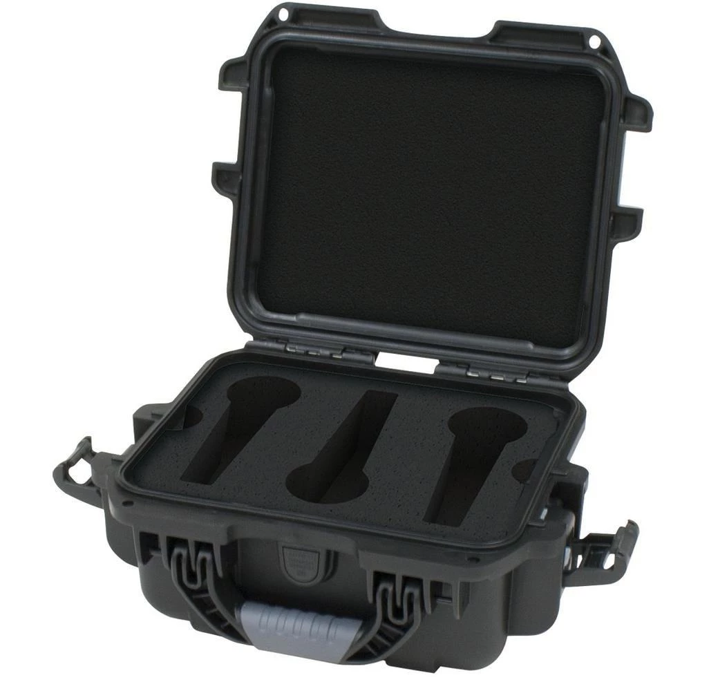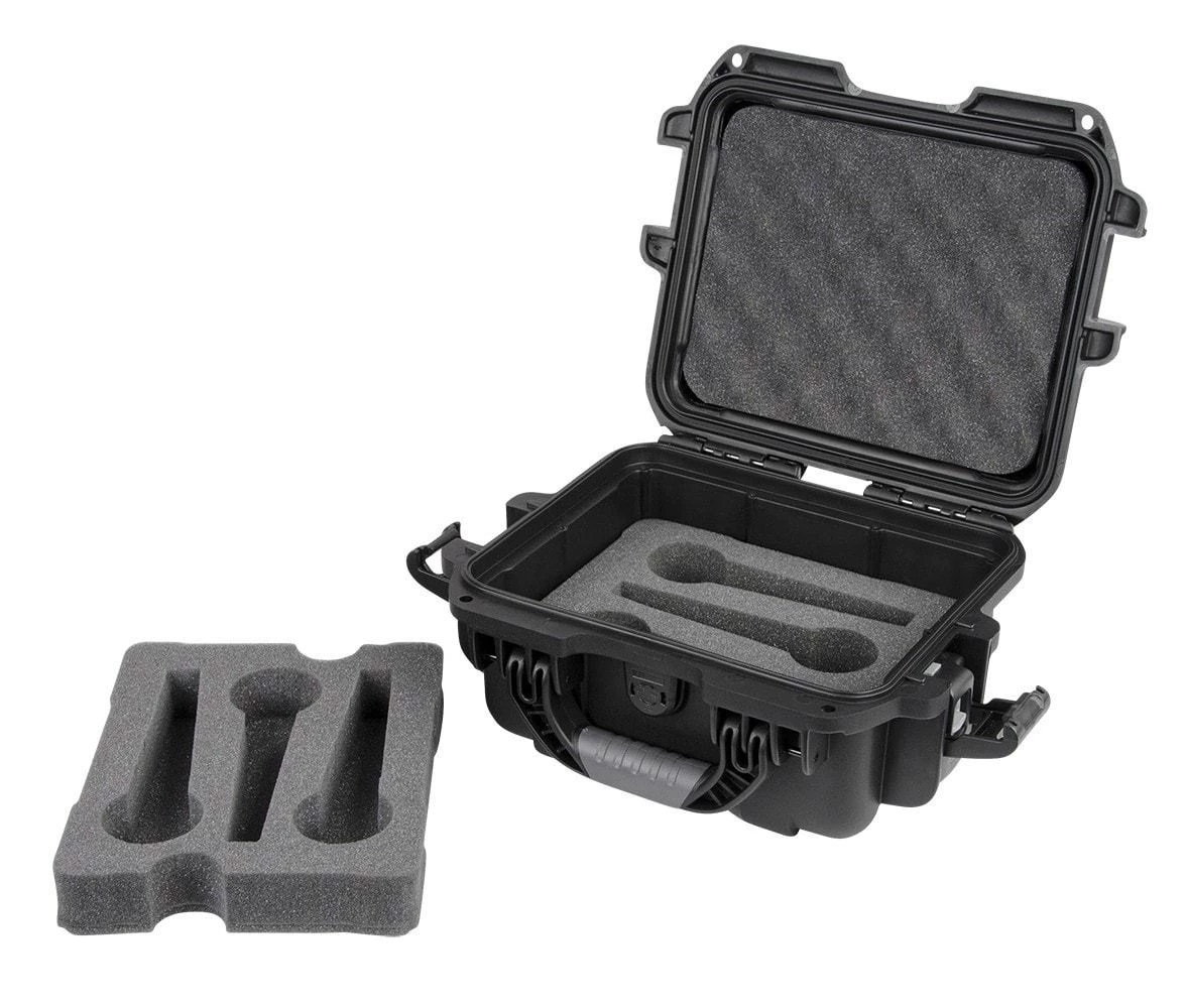 Black waterproof injection molded case with foam insert to accommodate 6 handheld mics. Gator Category: Microphone, Waterproof Mic Cases. Weight: 5.6 lbs.