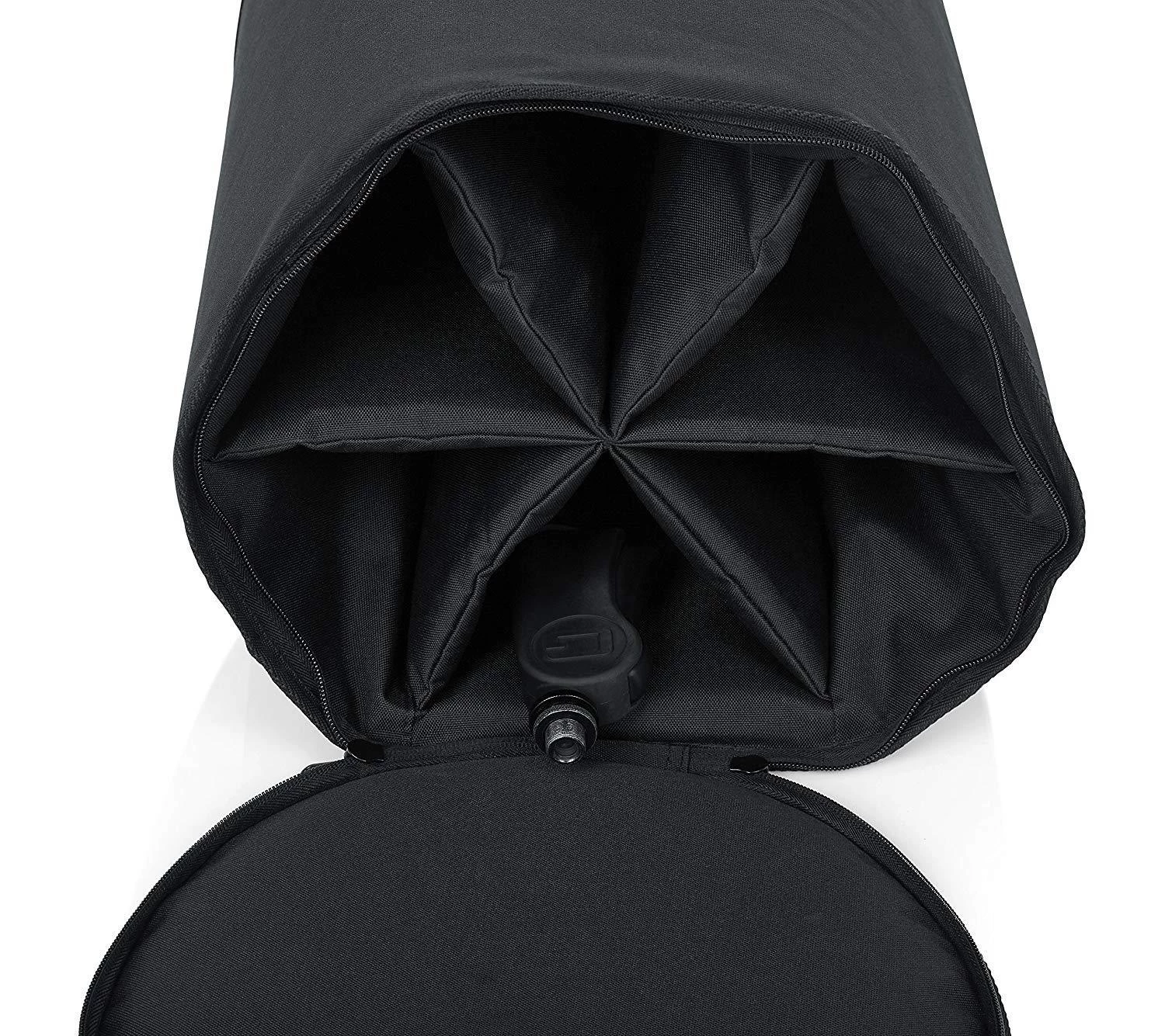 Gator Frameworks deluxe microphone stand carry bag is made from a rugged nylon material and is designed to hold up to (6) tripod microphone stands up to 42″ total length. A 360 Degree zippered top section makes for easy loading and unloading and the padded internal sections protect each stand during use. Each mic stand section measures 42″ x 4″ x 4″. the bag includes an adjustable shoulder strap, reinforced side carry handles and a reinforced bottom section to prevent wear.