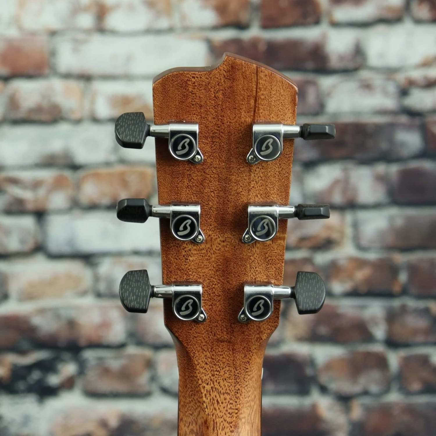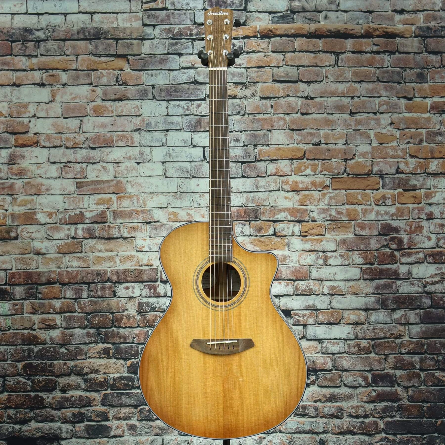 The Breedlove Organic Signature Concerto Copper CE aims to inspire the beginning guitarist with its superior all solid wood tone at a very obtainable price. The small concertina-style body is comfortable to play and provides a rich punchy tone. The shorter scale means the strings will have a slinky feel and will be easier to fret. More advanced players are also attracted to the Organic Signature series for its quality construction and sound. Features include a Copper Burst semi-gloss finish, Solid European Spruce top wood, solid African Mahogany back & sides. Taking things a step further, Breedlove applies a torrification process to the top wood. This process improves the sound of the wood giving it an “aged” tone.