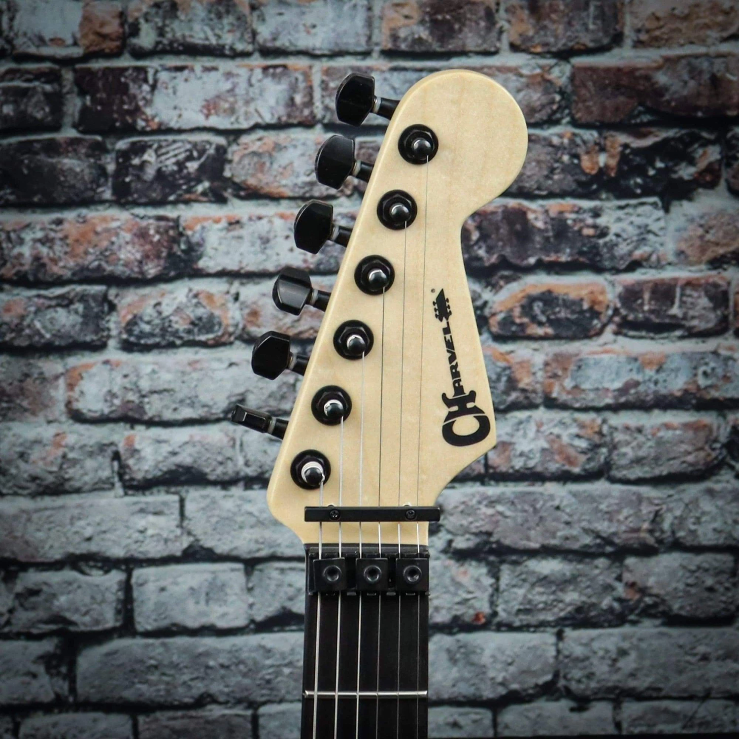The San Dimas sassafras body is coupled with a bolt-on maple neck featuring a pair of graphite reinforcement rods to resist bending and warping under environmental stresses. The speed neck profile is designed for lightning-fast playing and completely unhindered position shifts, while the comfortably rolled fingerboard edges provide the broken-in feel of an instrument with plenty of playing miles on it, and plenty more to go. Perfect for faster tempos, the 12″-16″ compound radius ebony fingerboard hosts 22 jumbo frets and white dot inlays. For regularly touring musicians, a heel-mount truss rod adjustment wheel is a must, allowing for quick and convenient neck relief tweaks.