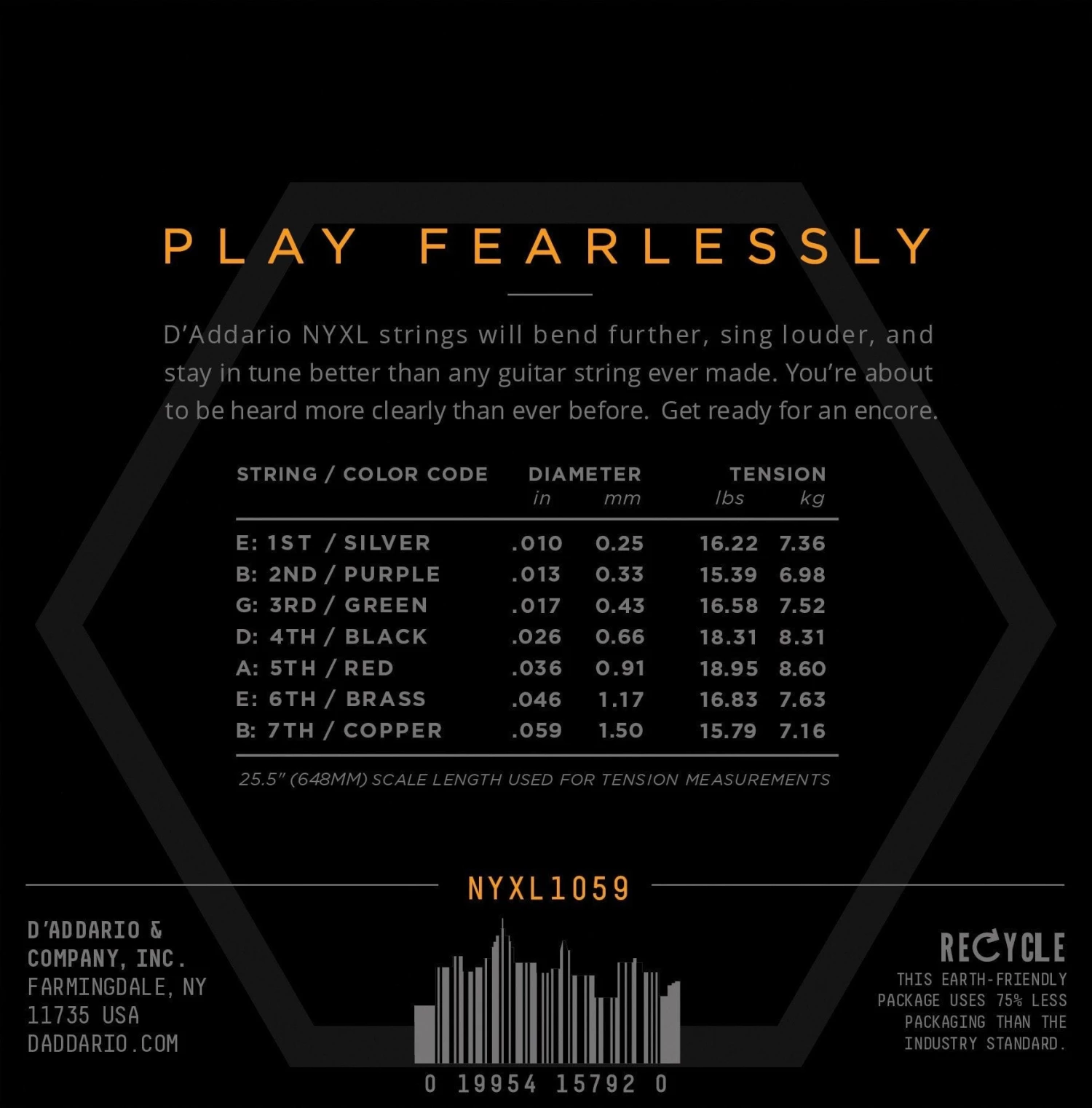 | NYXL1059 is designed with the most popular 7-string gauges for comfortable playability and an ideal electric tone. |