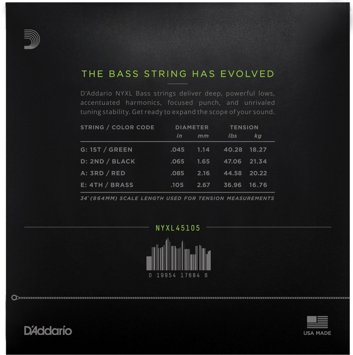 | NYXL Bass features our high carbon NY Steel core wrapped with our reformulated nickel-plated steel. This new construction delivers deep, powerful lows, focused punch, and accentuated harmonics. Designed for all playing styles, NYXL Bass provides more dynamic range and sustain than any other bass string. |