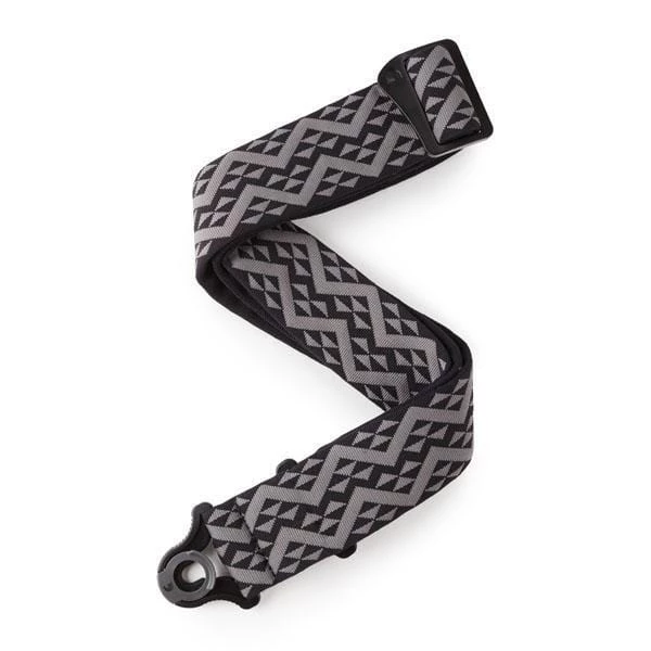 The D’Addario Auto Lock Guitar Strap is the simplest integrated strap locking system for your performance. Simply slide the strap end over the guitar strap buttons and you are locked in – it’s that easy. The grey latch is spring-loaded so it automatically clamps down on the strap button and will not release until you want it to. Just push up on the grey latch, slide off the end, and the strap is removed. Works with most strap buttons on the market. The Auto Lock Guitar Strap was designed in partnership with Ned Steinberger.