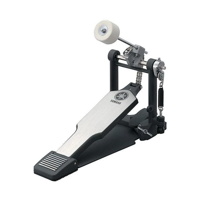 The FP-8500C is a double chain drive single pedal. The FP-8500C has adjustments for beater angle, footboard angle, and spring tension. The footboard is longer, making this pedal ideal for drummers that play with a heel/toe technique. The pedal frame has a stabilizer bar cast into it below the rocker shaft to eliminate flex. This keeps the bearings in alignment and gives the pedal a smooth feel. The hole in the beater hub is tear drop shaped so it securely holds the beater shaft. The FP-8500C ships with our hard felt beater that has been a favorite of many of our artists for years. The side-adjustable hoop clamp holds firmly to different thickness hoops, and tightens with a wing bolt.
