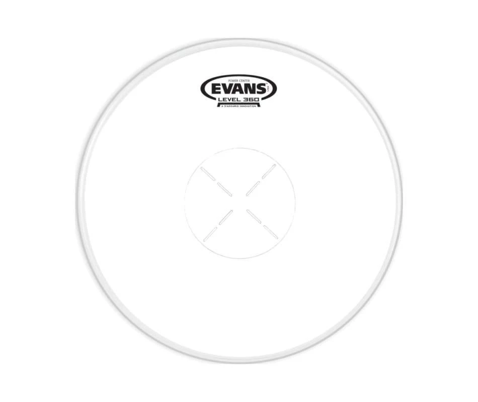 Evans™ Power Center™ snare heads feature a 10mil film. Extra durability and focus is provided by a centrally located 5mil patch on the top of the head. Unique slots in the 5″ diameter dot allow it to flex, keeping the head open and resonant