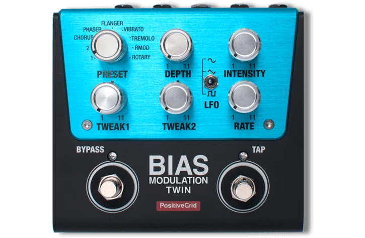 Positive Grid’s groundbreaking component emulation technology allows the BIAS Modulation pedal to recreate the thick and chewy sounds of a host of classic modulation devices, from vibrato and chorus to rotational speakers and ring modulators, putting a virtual encyclopedia of modulation on your pedalboard in a single parking space.