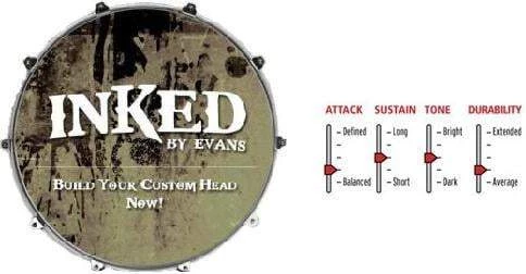The Inked by Evans gift card enables you to design and purchase a personalized custom graphic front bass drum head or give it as a gift to a friend or loved one. Choose any size from 20″; through 26″;, upload your own image, add custom text, and install a EMAD Resonant microphone port for one low flat price. Inked by Evans is a custom resonant bass drum head program that allows you to customize your graphics. Choose from the extensive library of graphics, pictures, textures and crests, or upload your own image to make a truly unique item.