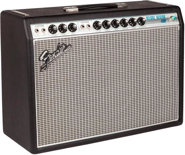 The guitarist with an eye and ear for late-’60s Fender “silverface” style will love the ’68 Custom Deluxe Reverb, which honors the classic look and great sound of that era’s amps. Small, light and moderately powered, the Deluxe Reverb received a fresh new face in 1968—a silver-and-turquoise front panel with aluminum grille cloth trim, with tone, reverb and tremolo that was still pure Fender. The ’68 Custom Deluxe Reverb also has modified all-tube circuitry, vintage channel for traditional silverface tone, custom channel with Bassman® tone stack, and reduced negative feedback for greater touch sensitivity and quicker gain onset.