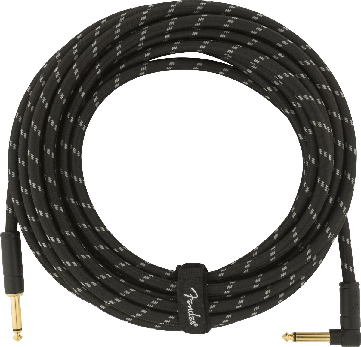 Fender Deluxe 25′ Instrument Cable | Black Tweed Guitar Accessories