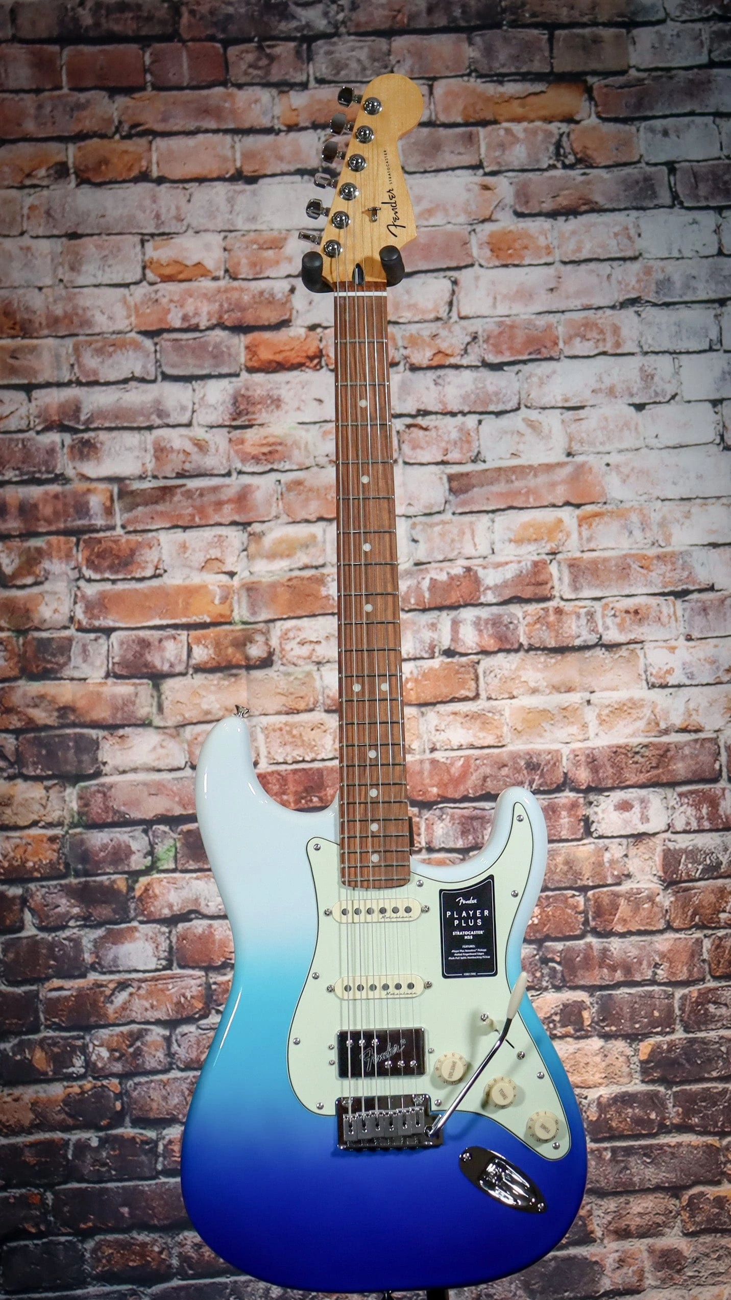 Fusing classic Fender design with player-centric features and exciting new finishes, the Player Plus Stratocaster HSS delivers superb playability and unmistakable style. The powerful Player Plus humbucking pickup delivers the perfect balance of gain and definition, while the Player Plus Noiseless Strat® pickups are bright and touch sensitive, offering classic Strat tone without hum. A push-pull tone controls activate coil-split mode for the humbucking pickup, delivering crystal-clear single-coil tones. The silky satin Modern “C” Player Plus Strat® neck fits your hand like a glove, with smooth rolled edges for supreme comfort. The 12” radius fingerboard and 22 medium jumbo frets facilitate fluid leads and choke free bends. Smooth and responsive, the 2-point tremolo provides classic vibrato effects, while the locking tuners provide rock-solid tuning and make string changes quick and easy. With classic Fender style, advanced features and stunning new finishes, the Player Plus Stratocaster HSS is the perfect tool to spark your creativity and stand out from the crowd.