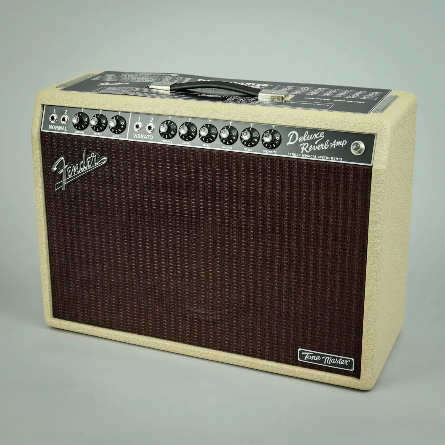 In a bold Fender first, the Tone Master Deluxe Reverb Blonde amplifier uses massive digital processing power to achieve a single remarkable sonic feat: faithfully modeling the circuitry and 22-watt power output of an original Deluxe tube amp. A high-performance 100-watt digital power amp is used to achieve the headroom and dynamic range of a real vintage Deluxe tube amp. The resonant pine cabinet is paired with a single Celestion® NEO Creamback speaker for a more distinctive rock ‘n’ roll flavor. The result is tubeless Deluxe Reverb tone, volume and dynamics virtually indistinguishable from the all-tube original. The amp model has been modified to remove the virtual bright cap on the Vibrato channel, which gives modern players greater tonal flexibility when using distortion and overdrive pedals. Additionally, the reverb control now provides easier fine-tuning at lower settings. Perhaps most notably, even with all these features and more, the Tone Master Deluxe Reverb is in fact about only half the weight of an all-tube Deluxe.