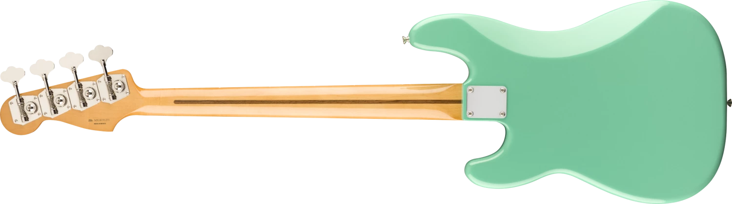 For authentic, original-era tone we re-voiced the single split-coil P Bass pickup to sound more like the original. Seismic and punchy, it has the tone that made the P Bass one of the most popular electric basses. The “Vintage C”-shaped neck has a 7.25”-radius fingerboard with 20 vintage-style frets for classic playing feel. A vintage-style, 4-saddle bridge with threaded saddles and vintage-style tuning machines provide original-era aesthetics, rock-solid performance and tuning stability. Other features include an anodized aluminum pickguard, chrome hardware and 4-bolt neck plate. Includes a deluxe gig bag.