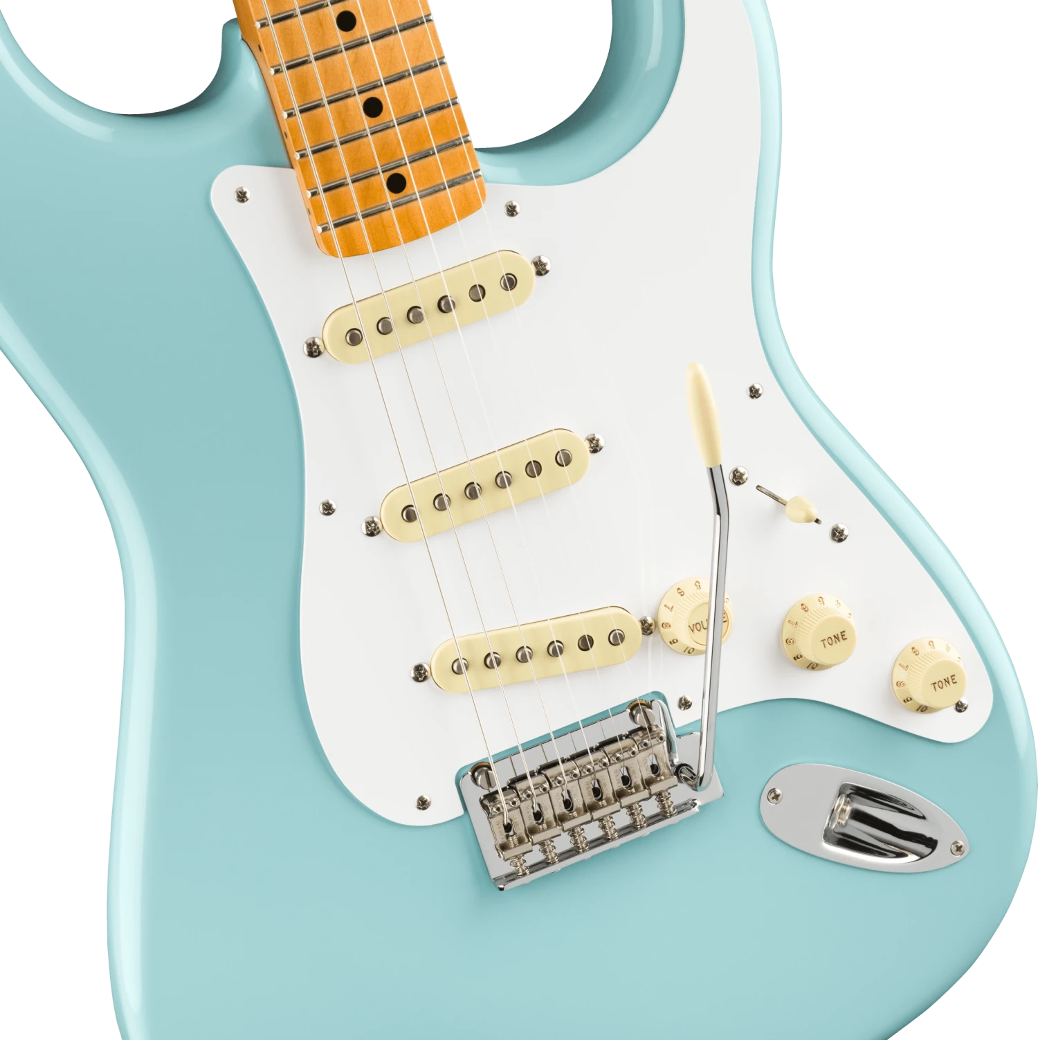 For players who appreciate the mojo of the past matched to contemporary features, we created the Vintera® ‘50s Stratocaster® Modified. Blending classic looks with a modern neck profile and fingerboard radius, hotter pickups and updated electronics, this guitar packs a surprising amount of power under the hood.