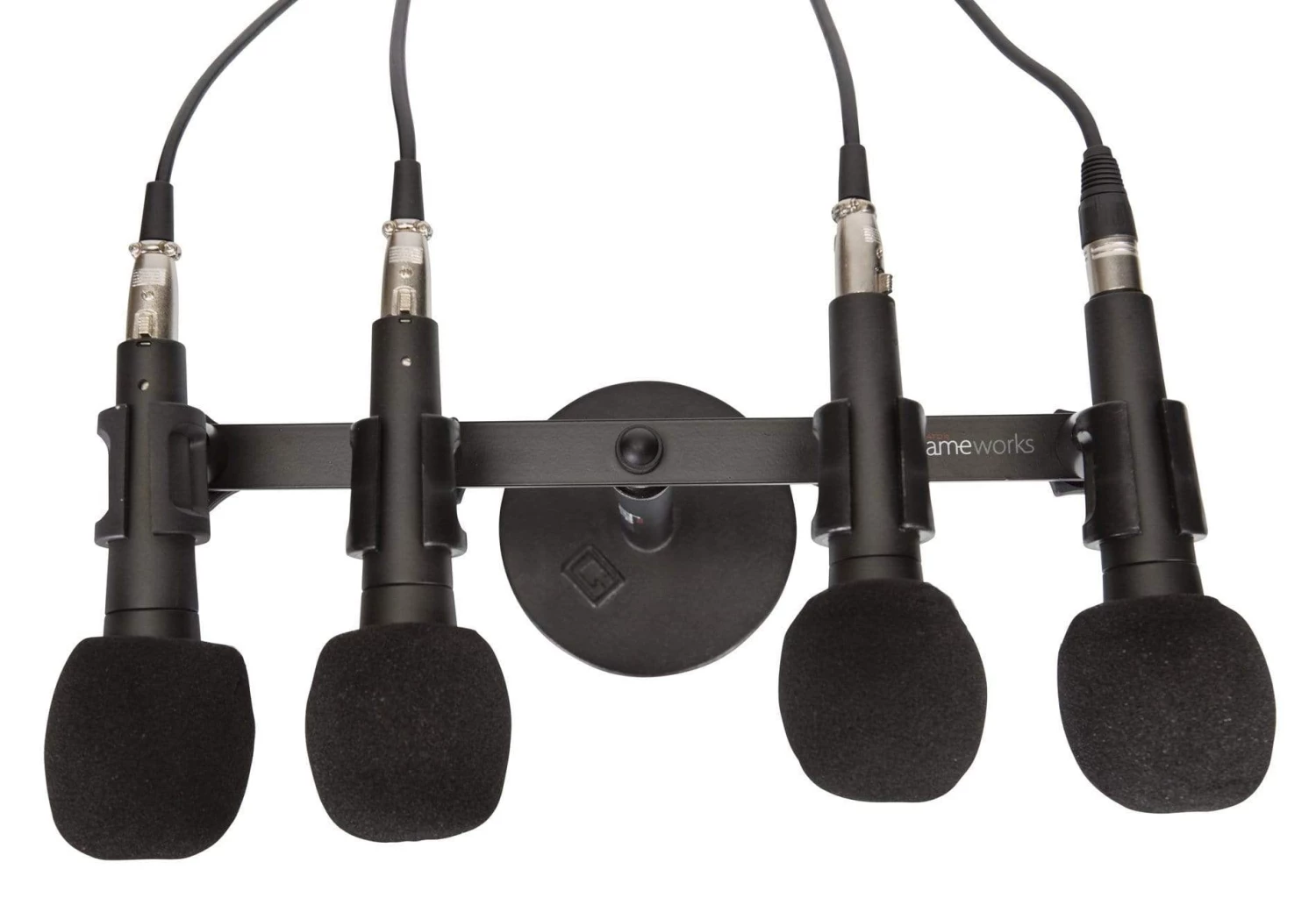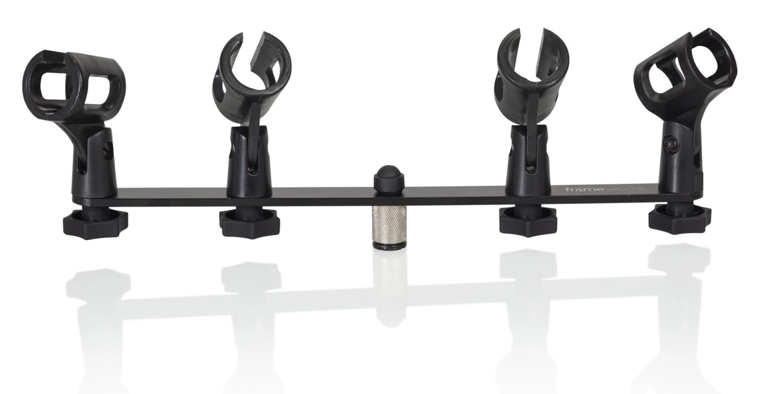 - Attaches up to (4) Evenly Spaced Mics with 5/8”-27 Male Threads