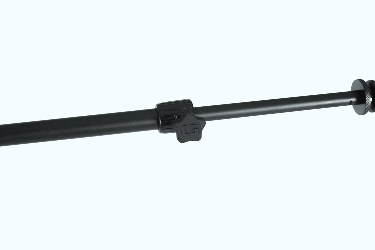 Frameworks tripod mic stand with telescoping boom and standard twist clutch.