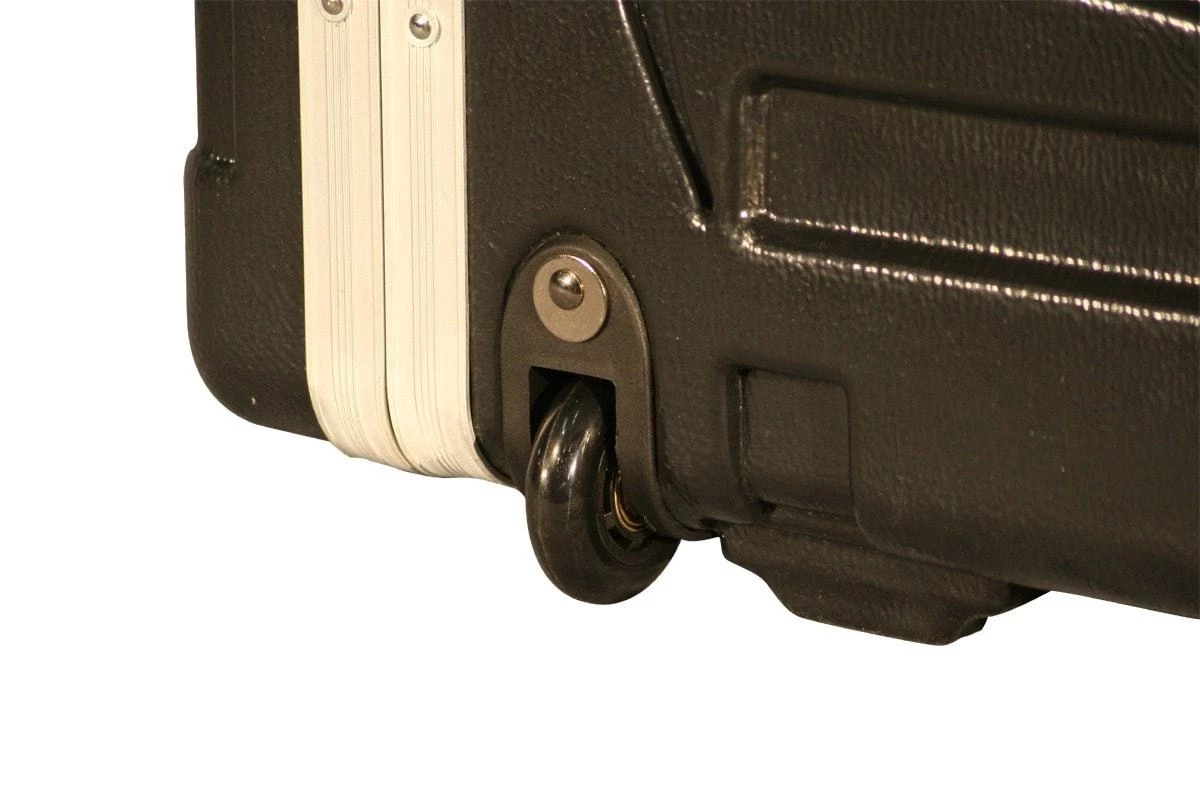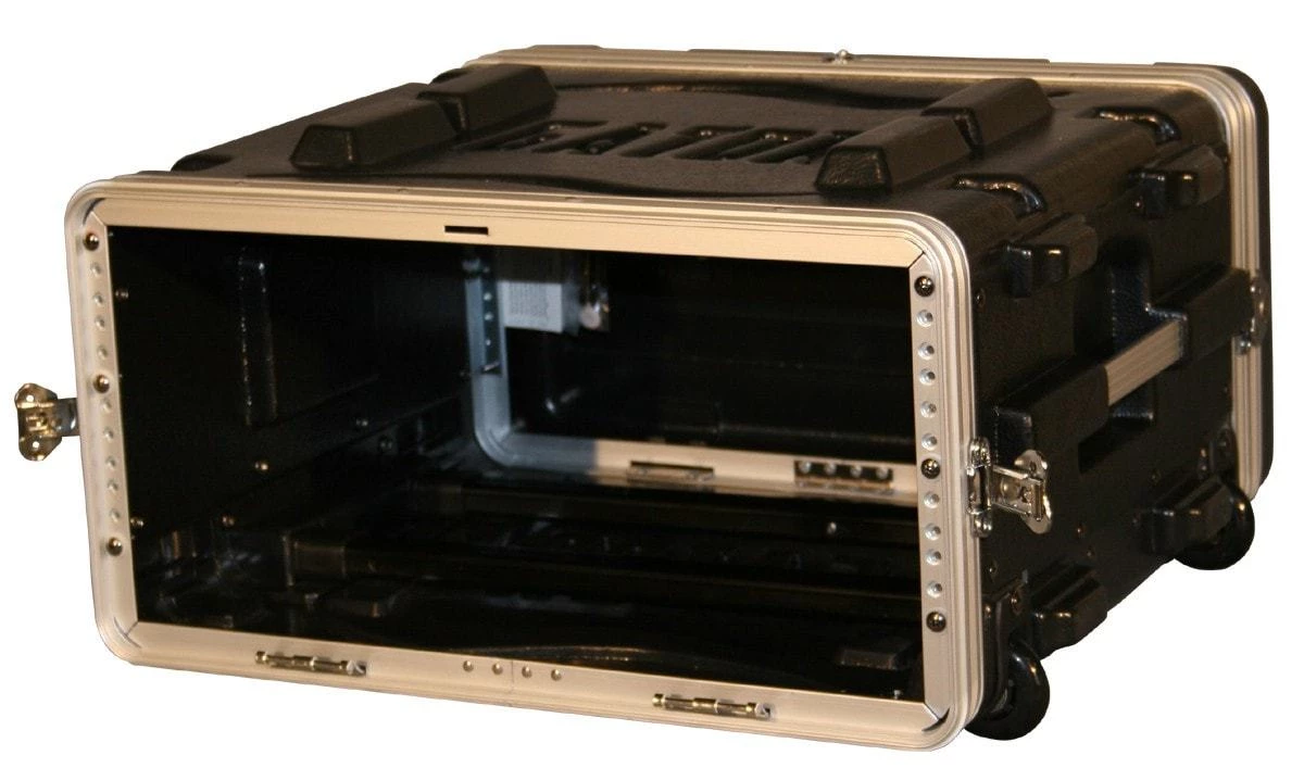 Molded PE Rack Case; Front, Rear Rails; 19″ Deep; Locking, Pull Handle, Recessed Wheels. Gator Category: Racks – Portable, Standard Audio Racks. Weight: 17 lbs.