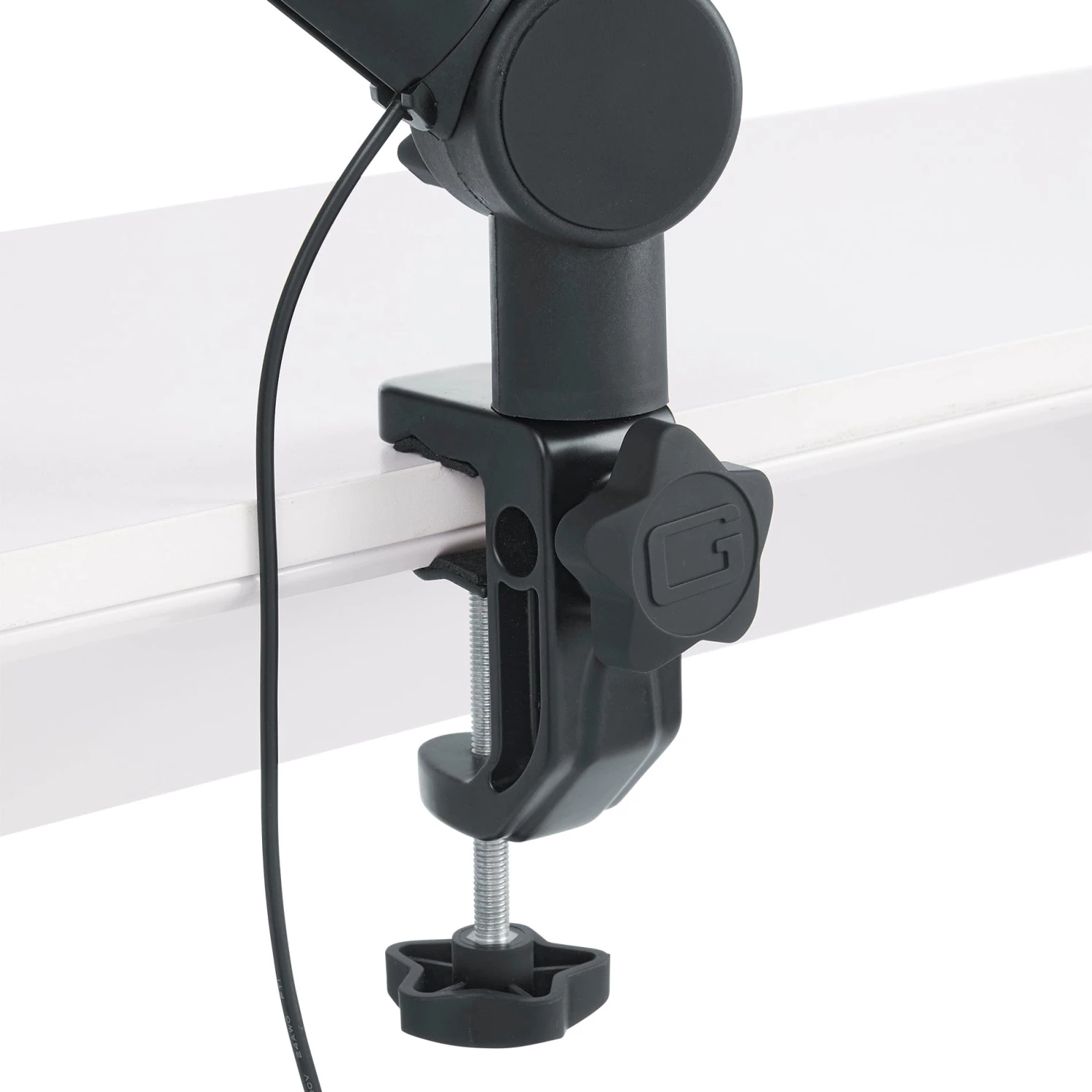 Calling all podcasters, video callers, professional broadcasters and even gamers! This premium microphone boom arm boasts a flurry of features that will aid you in jumping to the next level of your recording comfort and quality. This arm attaches easily and securely to any desk or tabletop with its included surface mount and clamp kit. It also features easy cable management with an integrated but also removable 10′ XLR cable. The arm itself rotates 360 degrees so that you can get that perfect spot that is out of the way but also gets the best sound. This professional quality boom arm unlocks the potential for quality recording from the comfort of your office chair!