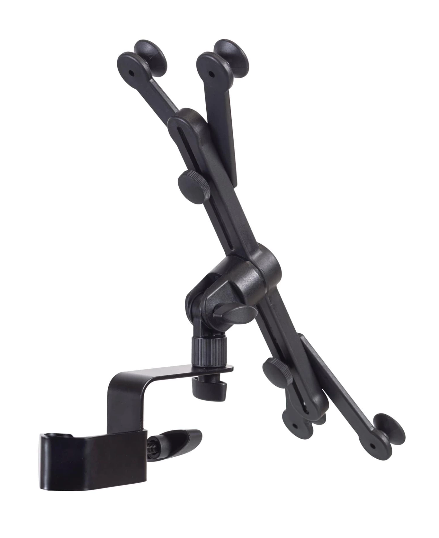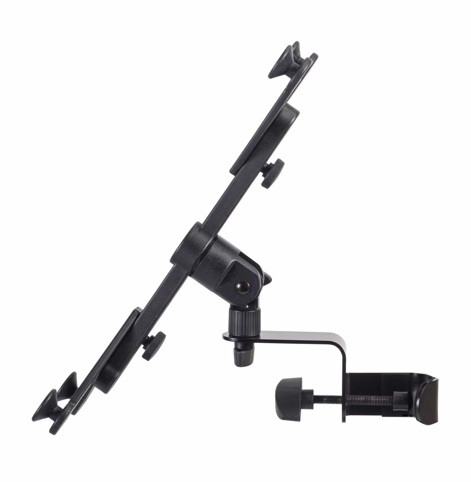 Looking to simplify your music organization by going digital? Whether it’s a live performance, recording, worship, or even practicing at home this iPad clamping mount is a neccesary addition to any microphone stand when using digital music. You could also use it to mount an iPad playing backing tracks right to your stand which provides arms reach convenience to control tracks. This stand provides support for tablets or phones that are 6″ – 15″ in either portrait or landscape view