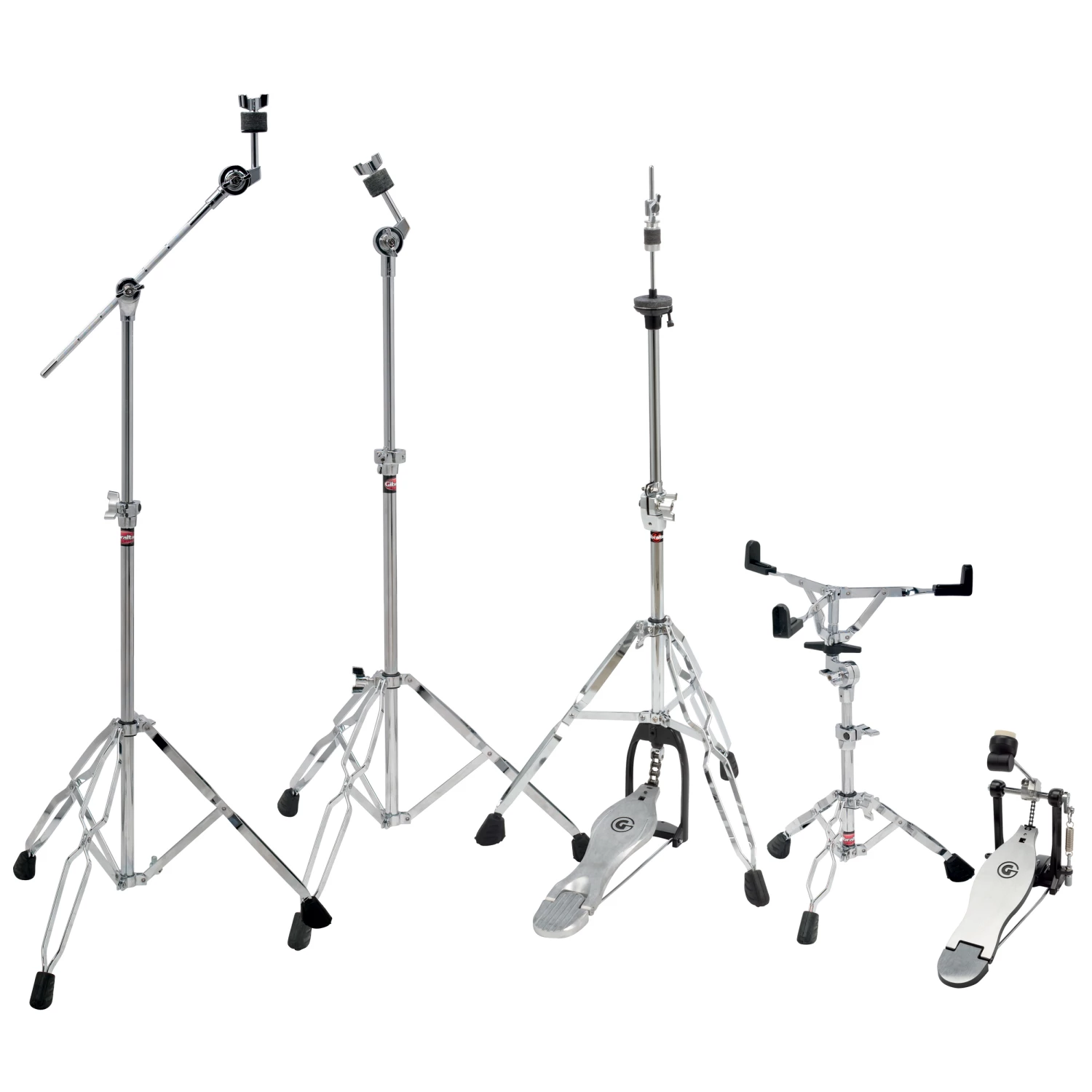 4000 light weight hardware pack. Includes: (1) snare stand, (1) hi hat stand, (1) boom cymbal stand, (1) straight cymbal stand, (1) single bass drum pedal.