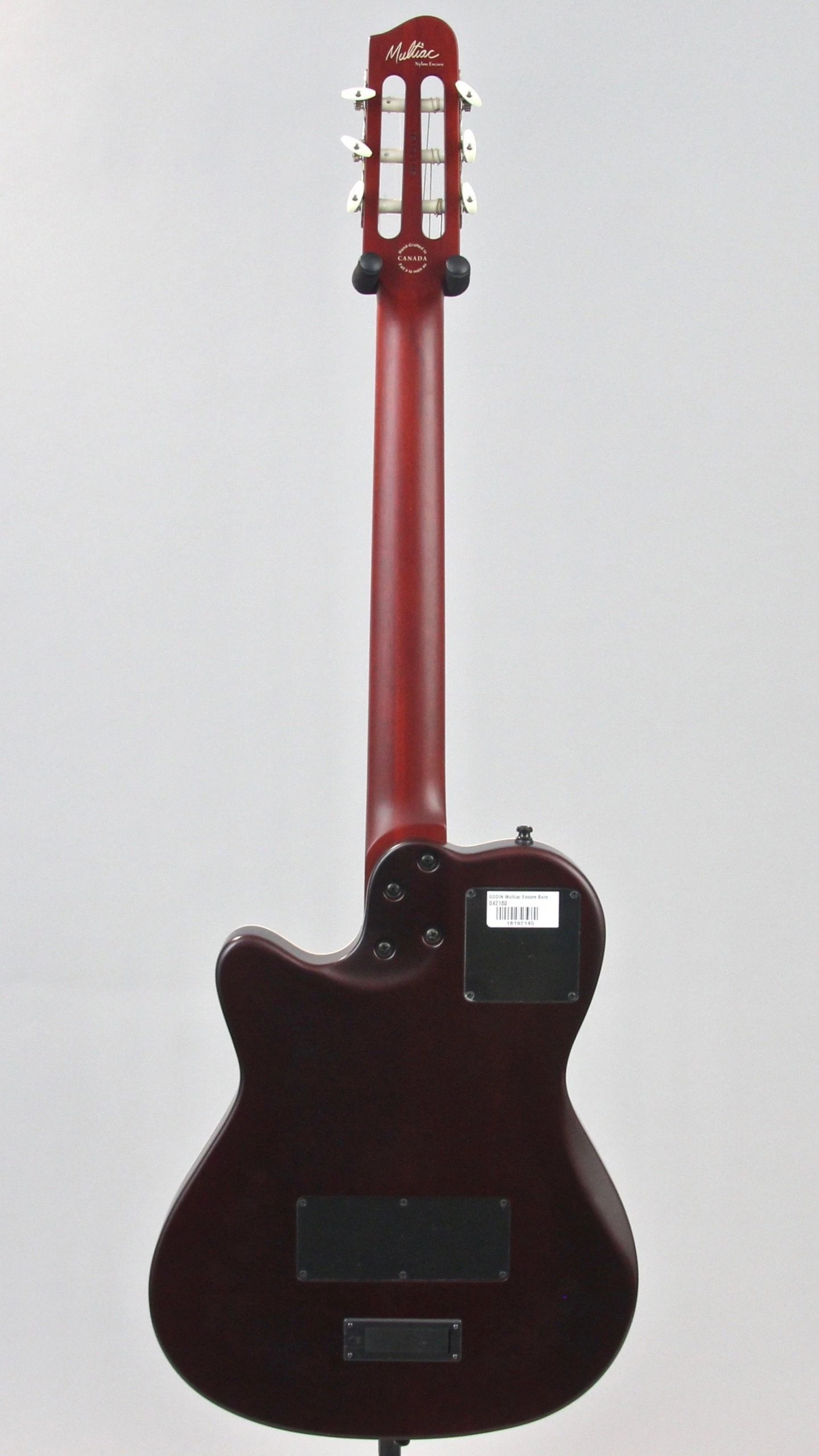 The Multiac Encore Burnt Umber model is equipped with custom electronics by EPM. This easy-to-use Blendable Dual Source System features an undersaddle transducer as well as an acoustic soundboard transducer, with the ability to blend one with the other. This is the ideal guitar for players looking for a an incredible amplified nylon-string sound and feel in a live and loud band setting with virtually no feedback.