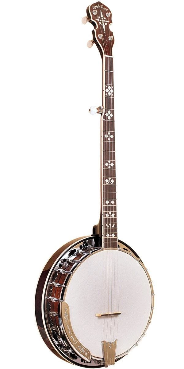 The Gold Tone BG-150F brings the beautiful appearance of the great pre-WW ll banjos to a new, lower price point. This banjo offers the player the lovely hearts-and-flowers fretboard inlay and the fully-bound neck and fourteen-inch resonator of the Gold Tone BG-250F combined with lightweight playing comfort (made possible by installing a quarter-inch brass-rod tone ring rather than the nearly three-pound bell brass ring in the BG-250F). Little is lost in sound quality or power, and long gigs played standing up become much more bearable. Available as left-handed model.