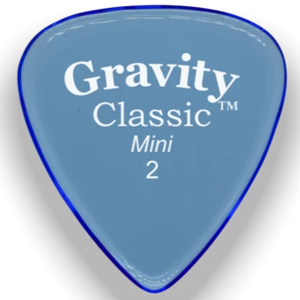 The Gravity picks classic mini is a traditional teardrop guitar pick shape that is handmade in California. This acrylic pick is slightly wider at the grip to make it easier to hold onto. Acrylic is brighter & louder than traditional picks, plus they will last a lifetime.