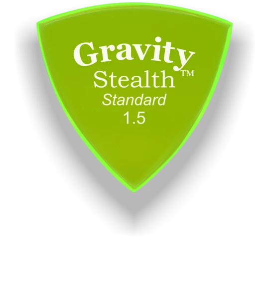 The Gravity Stealth is 3-sided pick with sharp points for a bright attack. Gravity picks are handmade in California. The acrylic lineup offers long life, bright tones, and extra volume over traditional plastic picks.