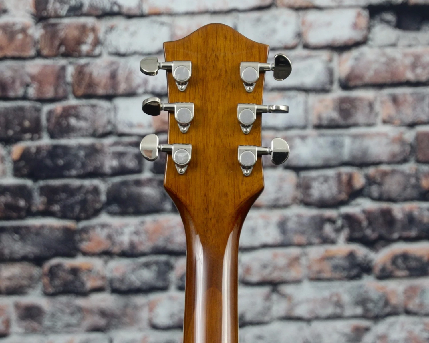 The secret to the Streamliner’s sound is twofold—the Broad’Tron™ BT-2S humbucking pickup and the spruce center block. Designed specifically for the Streamliner Collection, the high-output Broad’Tron pickup spawns improved definition with tighter bass response for robust lows, pristine highs and a throaty midrange. A lightweight spruce center block runs the length of the body, reinforcing the top while eliminating undesired feedback for volume-friendly performance on rocking stages. The Streamliner’s sonic power is harnessed and shaped by the traditional control layout—neck and bridge pickup volume controls, a master tone control, master volume control and three-way pickup switching. A fast-playing 12”-radius laurel fingerboard with elegant pearloid Big Block inlays and 22 medium jumbo frets sits atop the white-bound neck with a thin “U”-shaped profile—ideal for chord work or fiery riffing. Enjoy rock-solid tuning stability courtesy of the stylish Gretsch V-Stoptail tailpiece, anchored Adjusto-Matic™ bridge and synthetic bone nut.