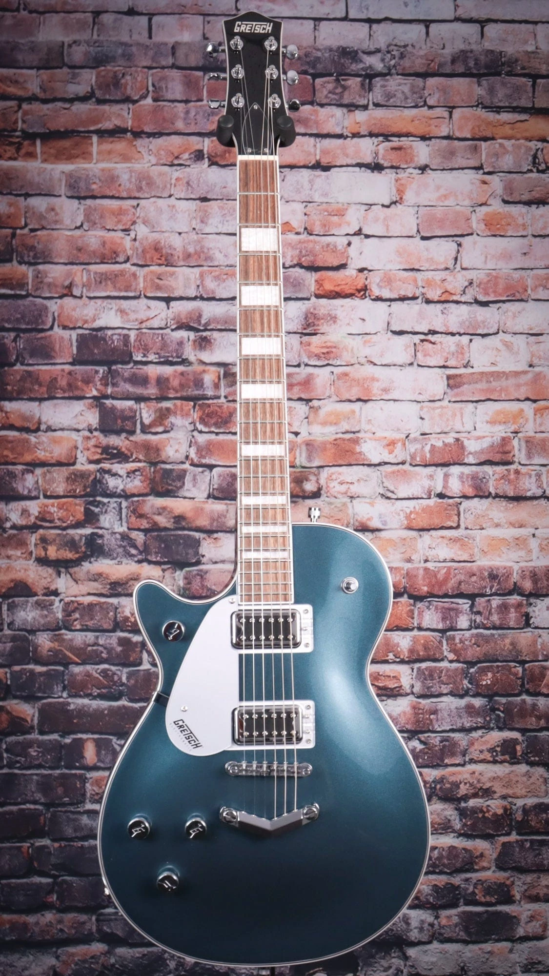 The all-new G5220LH Electromatic® Jet™ BT Single-Cut with V-Stoptaill delivers Broad’Tron™ power with classic Jet clarity.