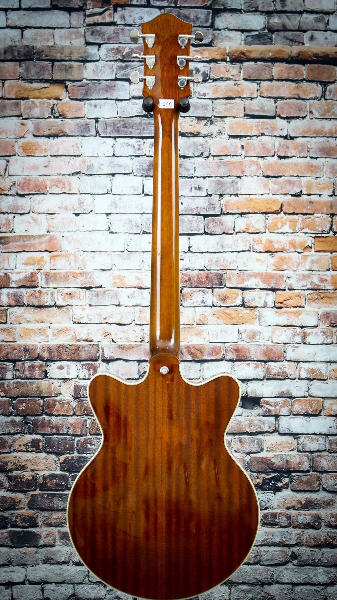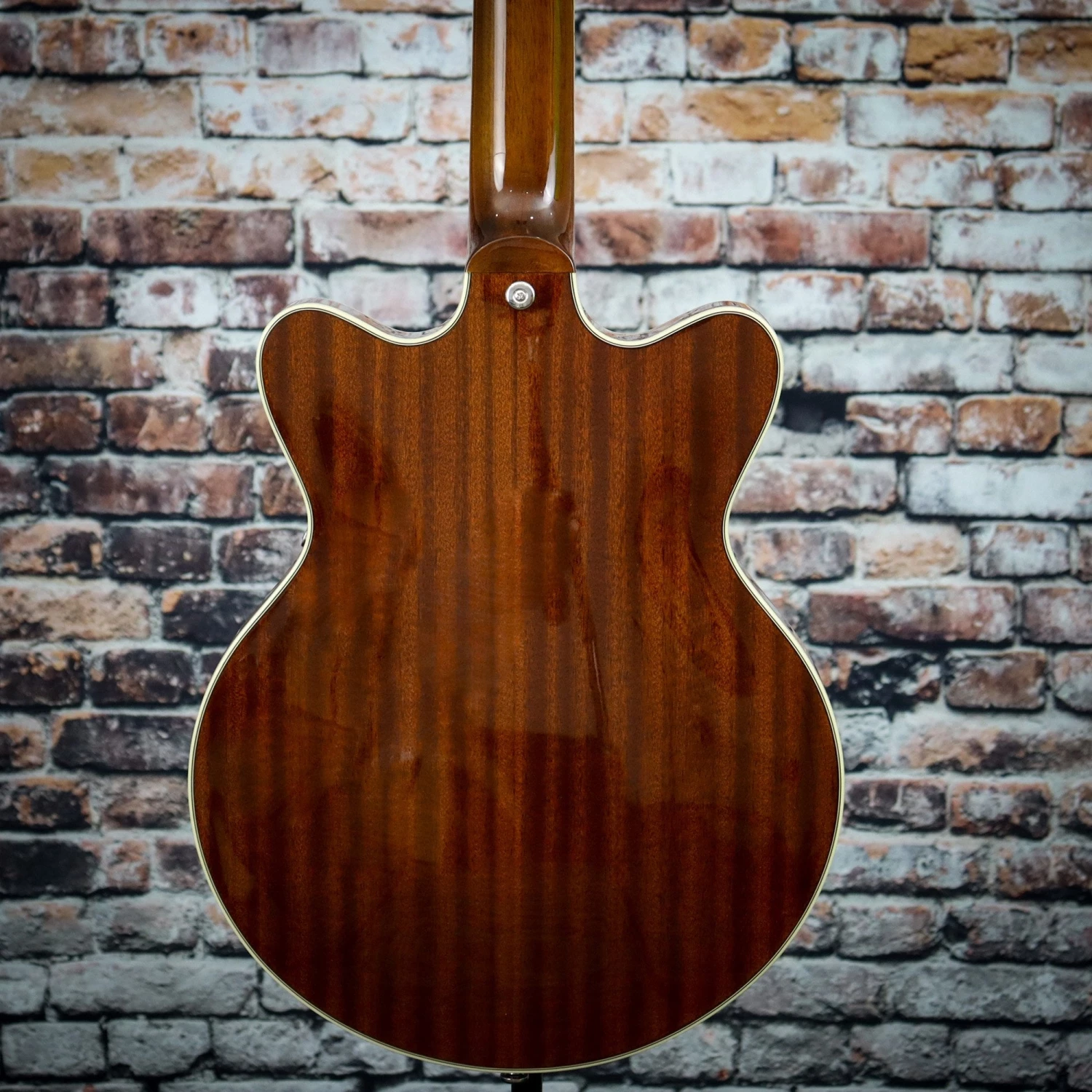 - Slightly smaller 14” double-cutaway arched mahogany body with chambered spruce center block
