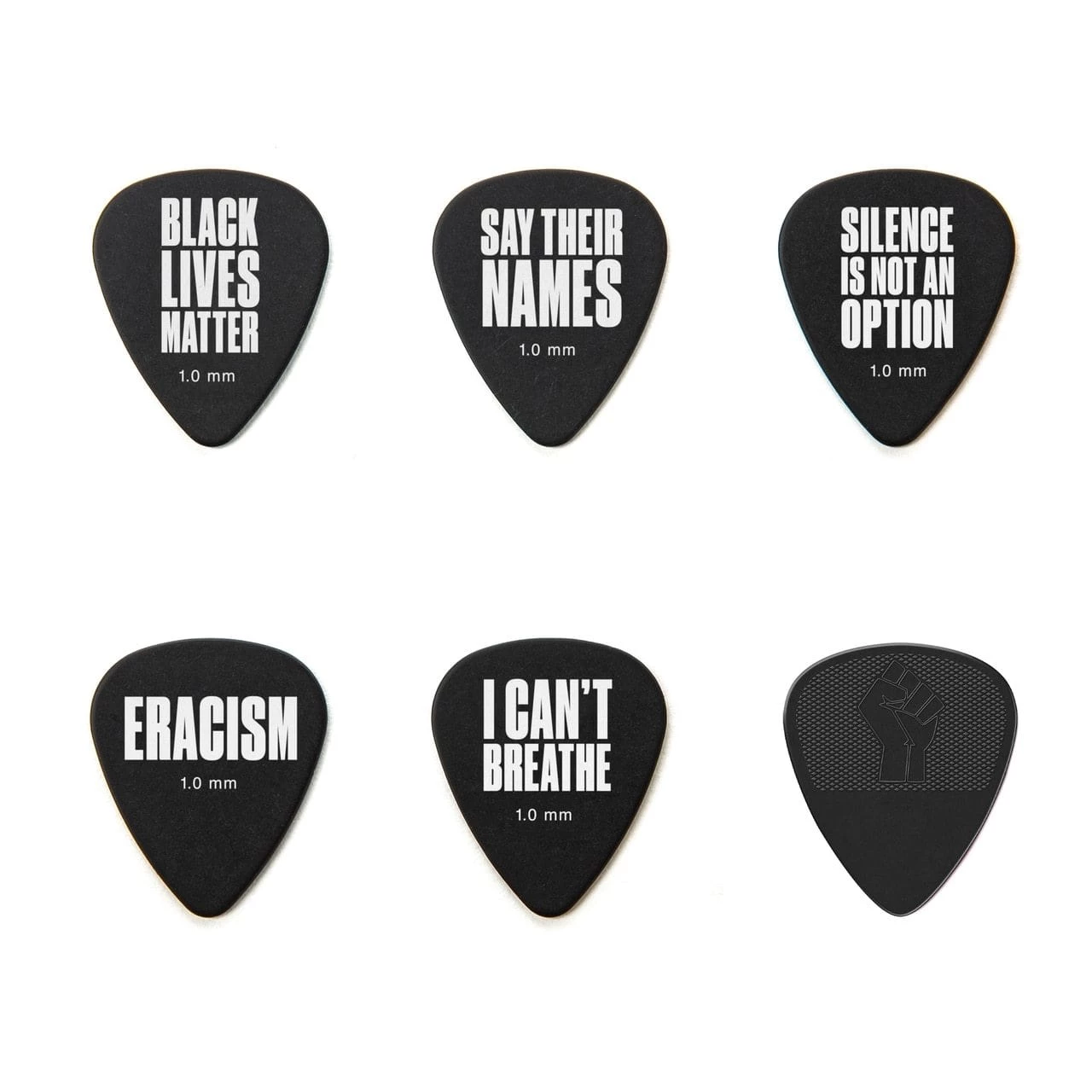 These five 1.0mm Tortex Picks honor the BLM movement and its commitment to justice and equality. All proceeds go to the NAACP Legal Defense and Educational Fund, Inc. This Pick Tin also includes a bonus .73mm Nylon BLM Pick.