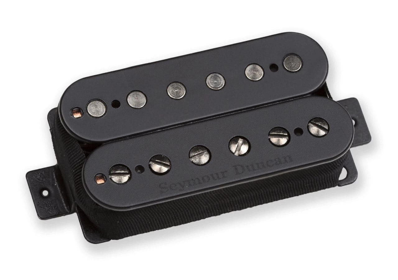 The Nazgûl was originally designed specifically for 7 and 8-string guitars, with the goal of delivering the perfect modern metal pickup for low tunings for extended range instruments under high gain. The Nazgûl has since erupted from the depths, and become a favorite among 6, 7, and 8-String guitarists; serving players whose styles range from hard rock to progressive metal and everything in between. Offered in 6-string standard humbucker and Trembucker spacings, the Nazgûl is also available for 7 and 8-String in a standard open-coil look or with a black metal humbucker cover in a classic passive mount that easily fits in any guitar with traditional routing. We also offer the 7 and 8-String Nazgûl in a standard active mount size with a black soapbar cover and one row of exposed poles for a more modern look.
