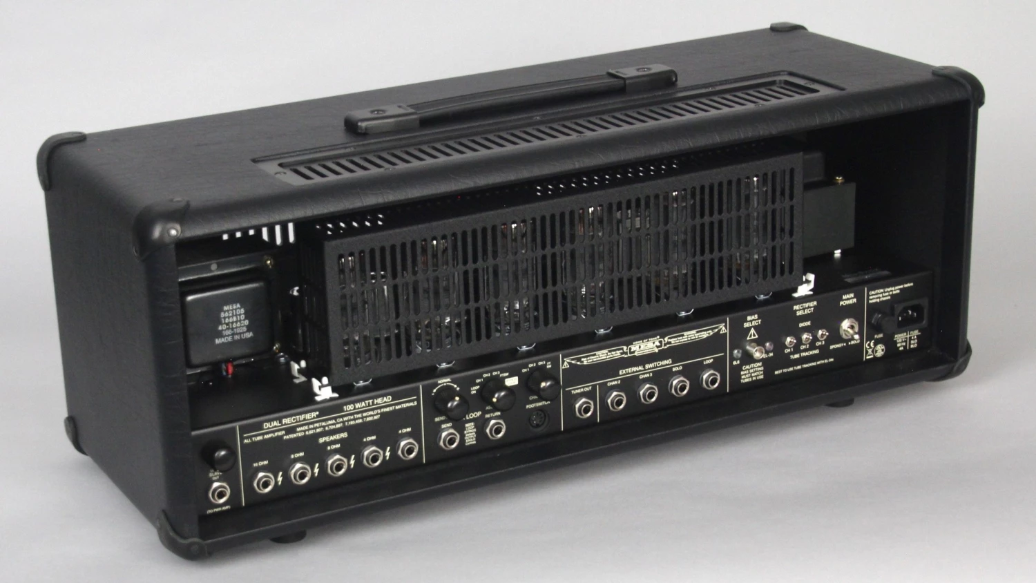 - Rectifier Select switch allows the user to toggle between a tube and solid-state rectifier on each channel