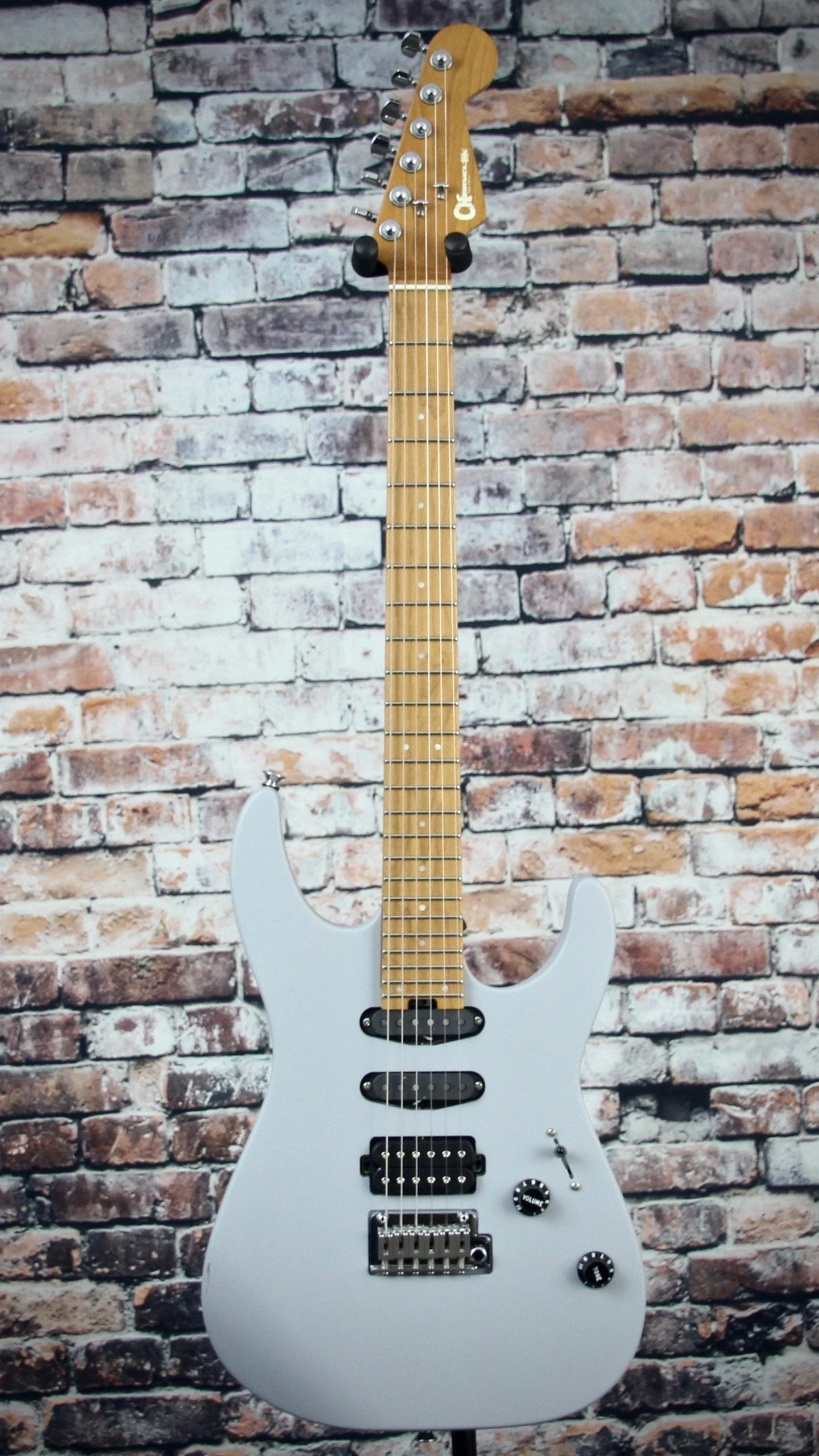 Modern performance features and elegant style are the hallmark of the Pro-Mod DK24 HSS 2PT CM. Its alder body in the classic Dinky™ style is dressed with a classic Satin Shell Pink finish. The two-piece bolt-on caramelized maple “speed” neck has graphite reinforcement, sculpted heel, heel-mount truss rod adjustment wheel, Luminlay side dots and a silky-smooth hand-rubbed urethane finish. Its 12”-16” compound radius caramelized maple fingerboard features comfortable rolled edges, 24 jumbo frets, pearloid dot inlays and Graph Tech® nut.
