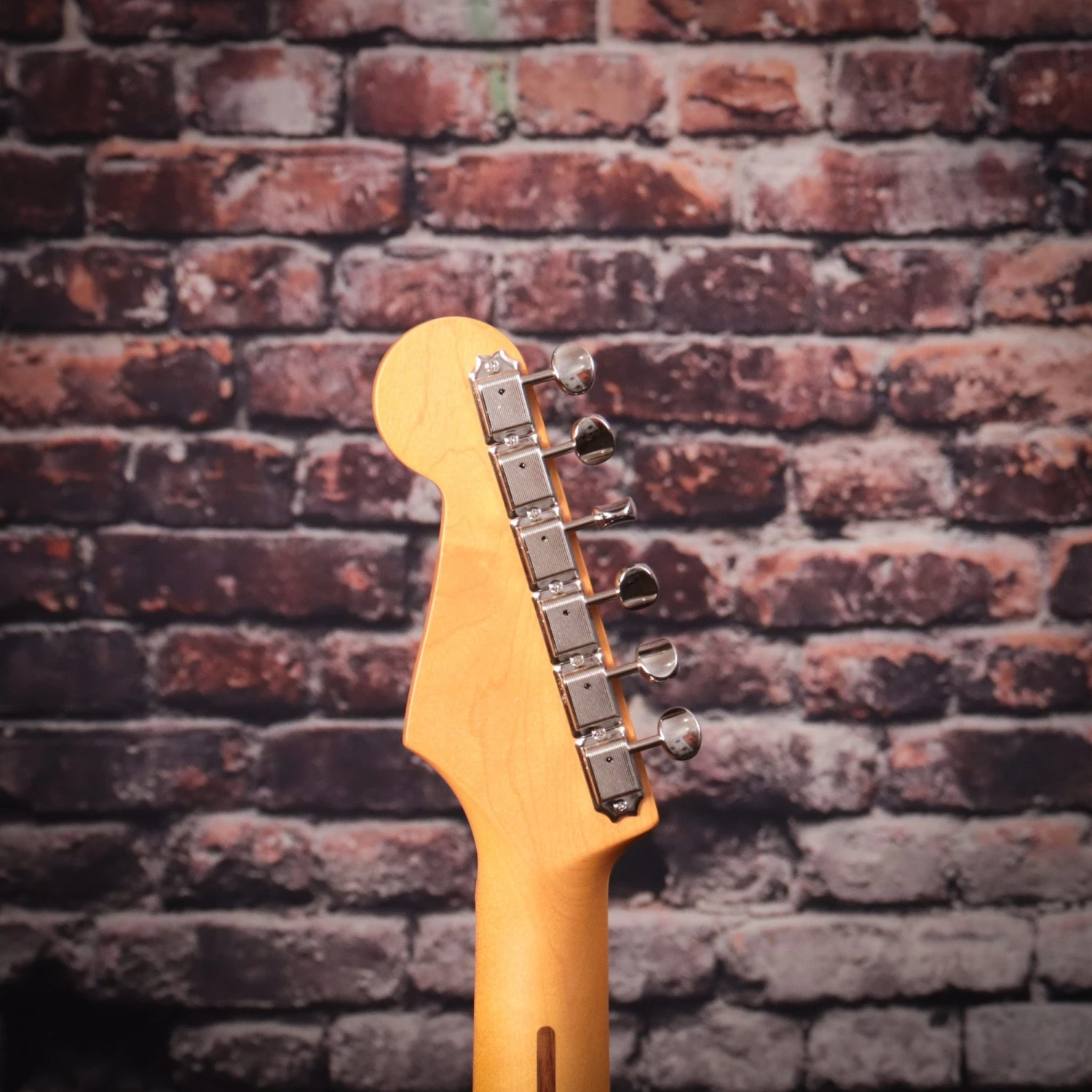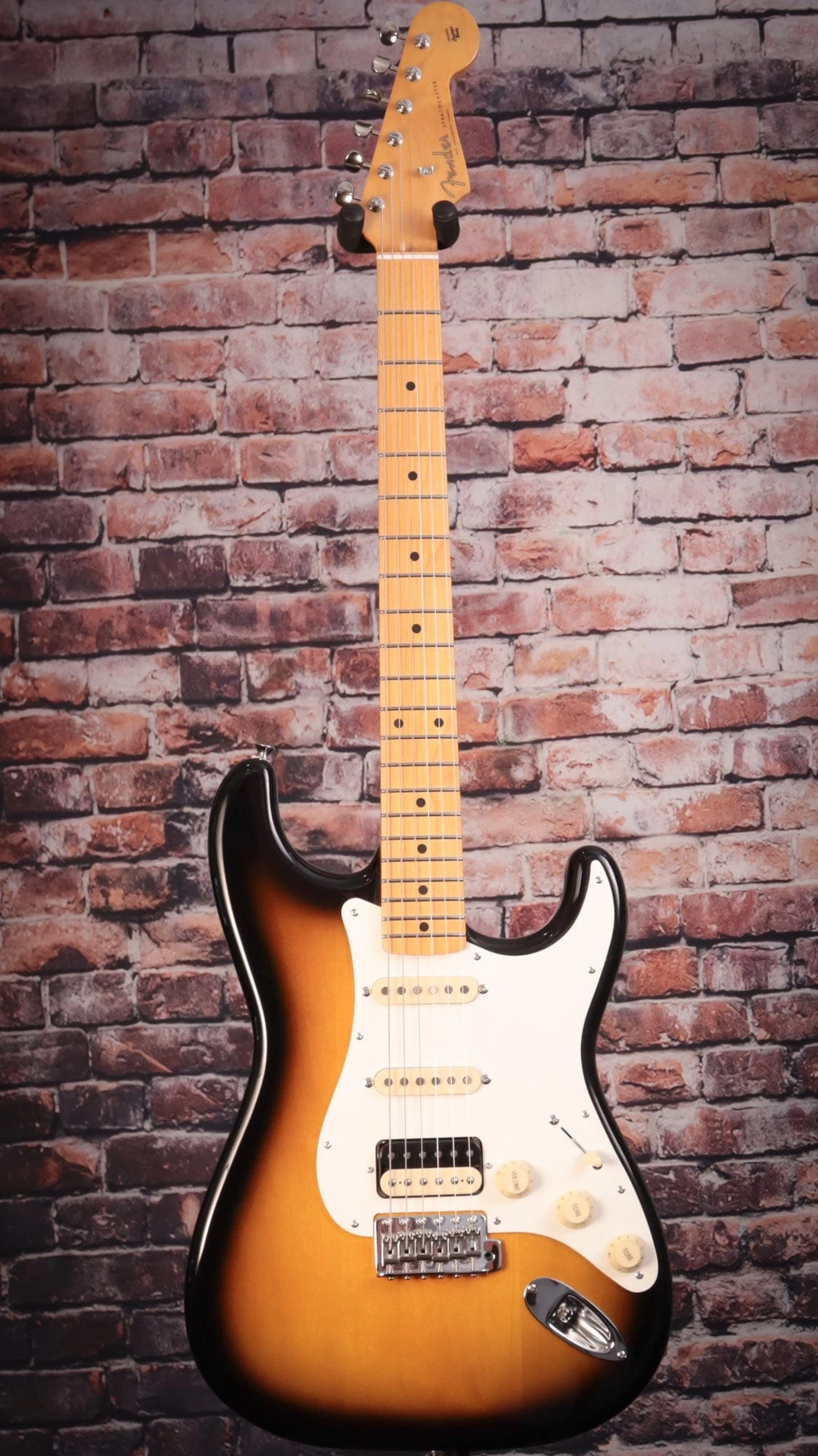 The ’50s Stratocaster HSS has a resonant basswood body and features a pair of vintage-voiced single-coil pickups in the neck and middle positions and a powerful humbucking pickup in the bridge position. A push-pull pot on Tone 2 splits the humbucking pickup for sparkling single-coil sounds, making this Strat extremely versatile. The Soft “V”-shaped maple neck has a silky-smooth satin finish and the 9.5″ radius maple fingerboard and medium-jumbo frets provide effortless playability.