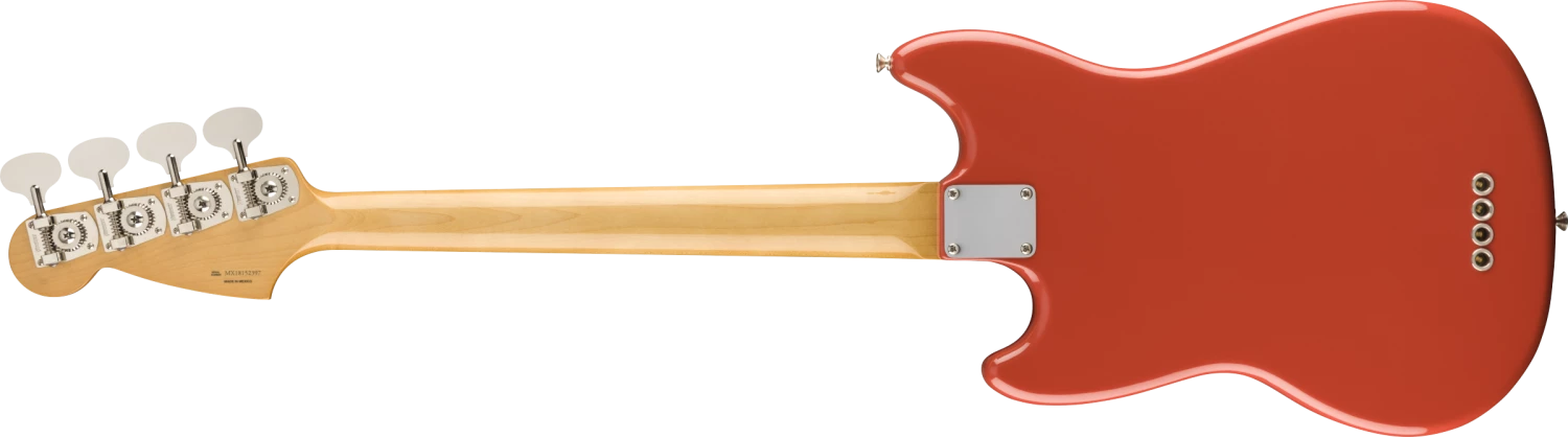 For authentic Fender tone we voiced the split-coil ‘60s Mustang Bass pickup to sound like the original. Punchy and growling, it has the tone that made Fender the choice of electric bassists. The “Mid ’60s C”-shaped neck has a 7.25”-radius fingerboard with 19 vintage-style frets for classic playing feel. A vintage-style, 4-saddle bridge with threaded saddles vintage-style tuning machines provide original-era aesthetics, rock-solid performance and tuning stability. Other features include master volume and tone controls, chrome hardware and 4-bolt neck plate. Includes a deluxe gig bag.