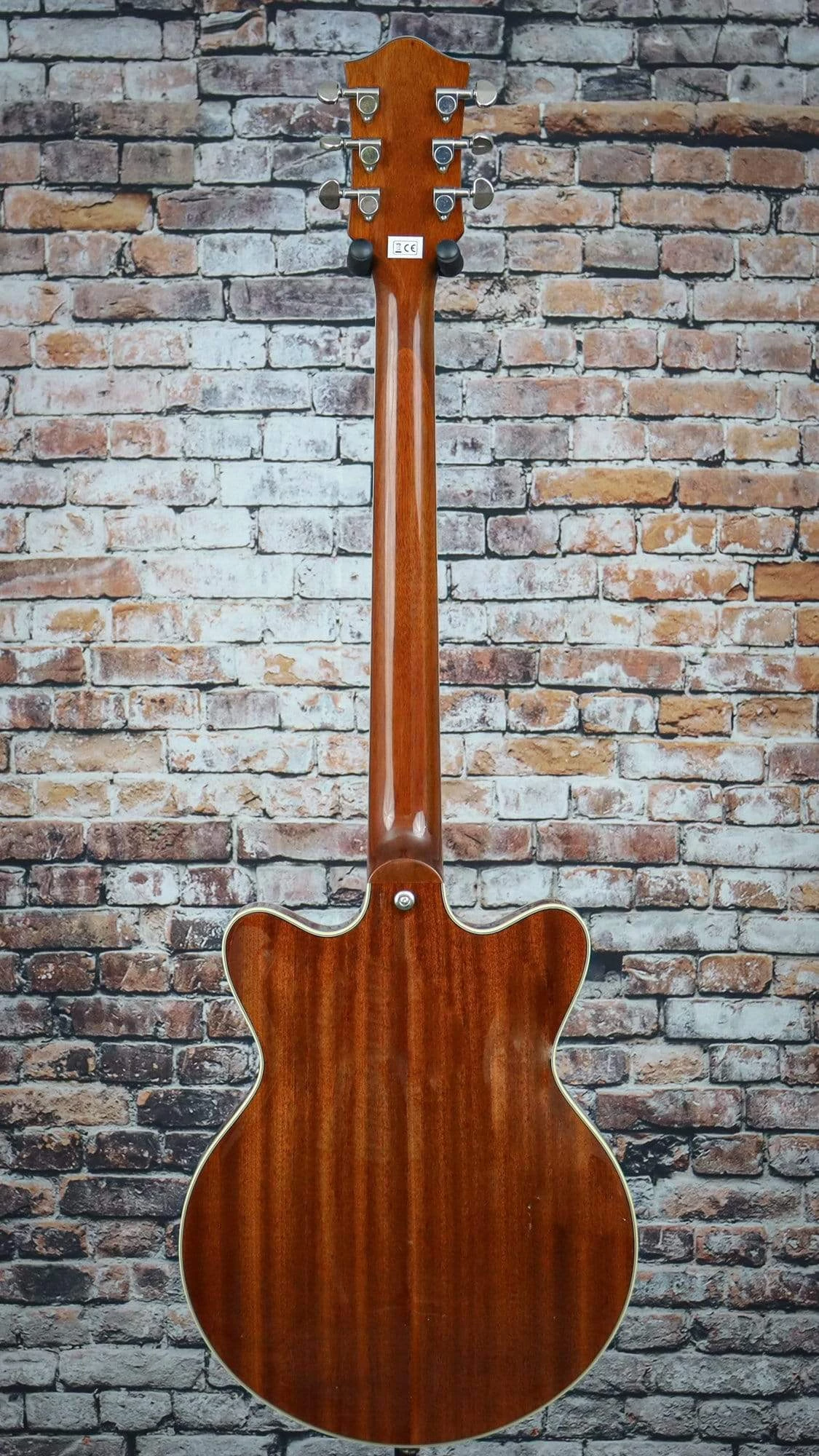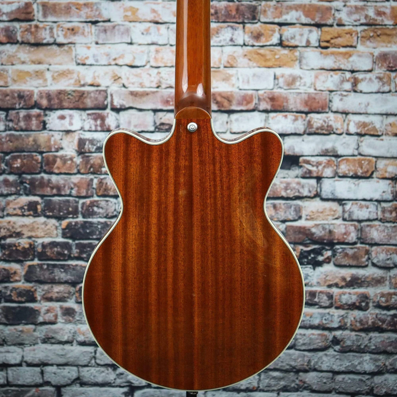 - Slightly smaller 14” double-cutaway arched mahogany body with chambered spruce center block