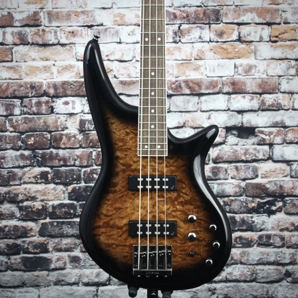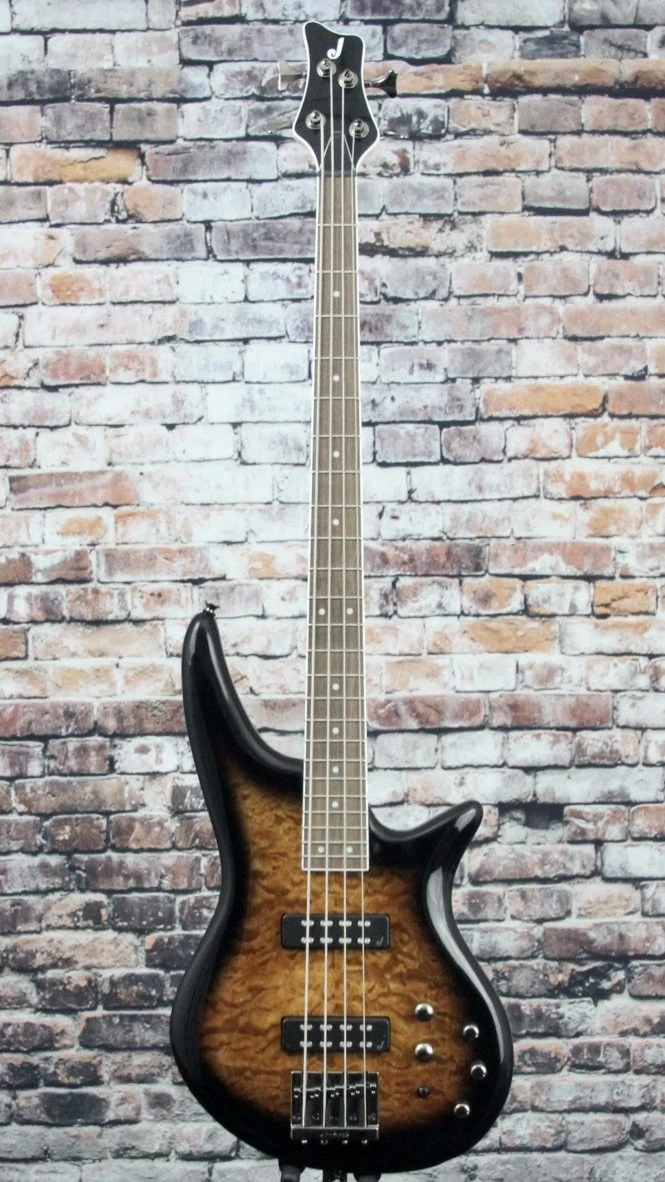Offering more boom for your buck, the 4-string, 34″-scale Spectra Bass JS3Q comes in a vibrant Amber Blue Burst or Dark Sunburst finish with black nickel hardware and a unique Jackson 2×2 headstock with an understated J logo.