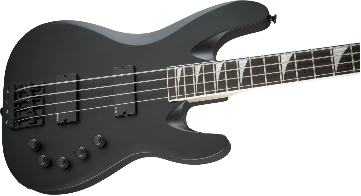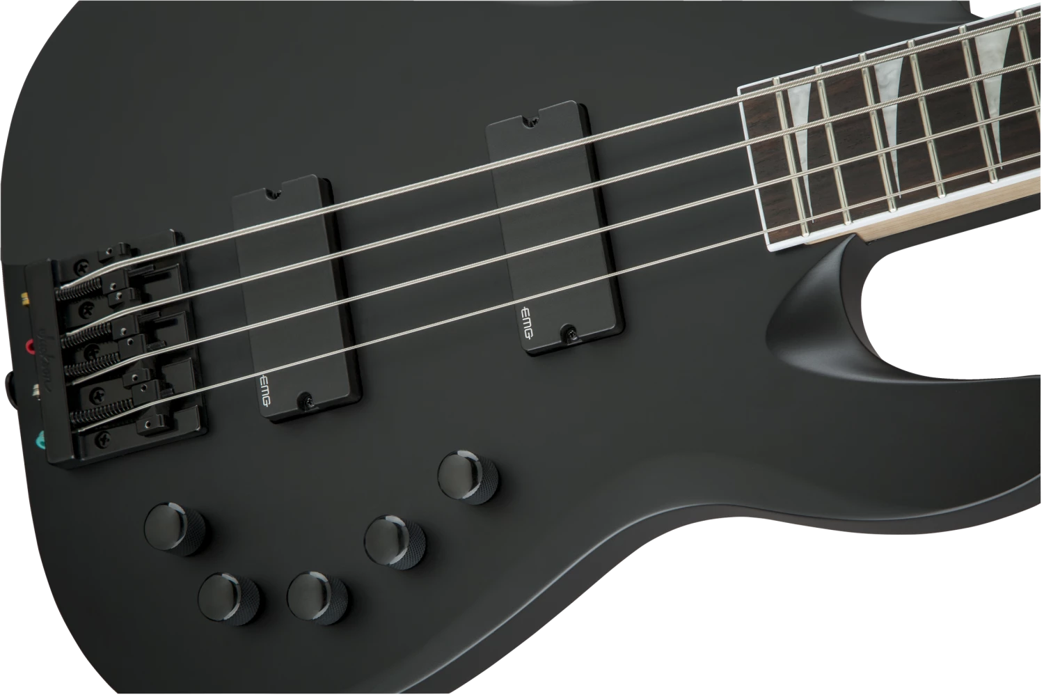 An earth-shaking pair of EMG® HZ35 active humbucking pickups in the neck and bridge positions provide plenty of girth and cut as an active 3-band EQ bolsters their native power, shaping and refining it for maximum impact and versatility. The blend knob allows you to mix the pickups to your taste—add more of the neck pickup for a touch of warmth, or bring up the bridge pickup for more cut. The Jackson HiMass™ 4-string bridge sharpens your notes’ attack for extra punch and clarity, granting enhanced sustain without significantly altering the bass’ fundamental tone.