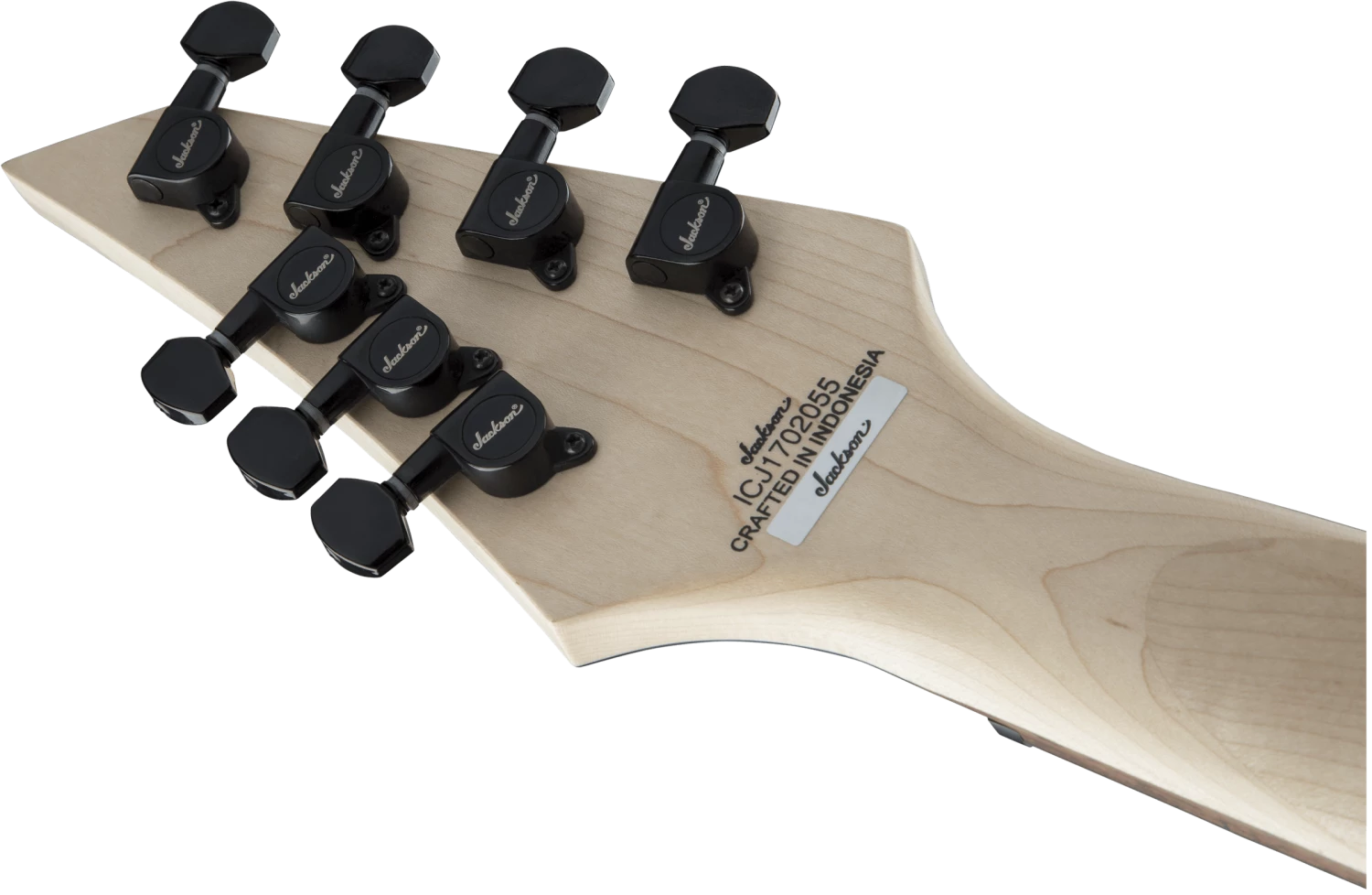 Dual Jackson uncovered 7-string blade humbucking pickups power this metal beast and can be shaped by a three-way toggle switch and single volume and tone controls.