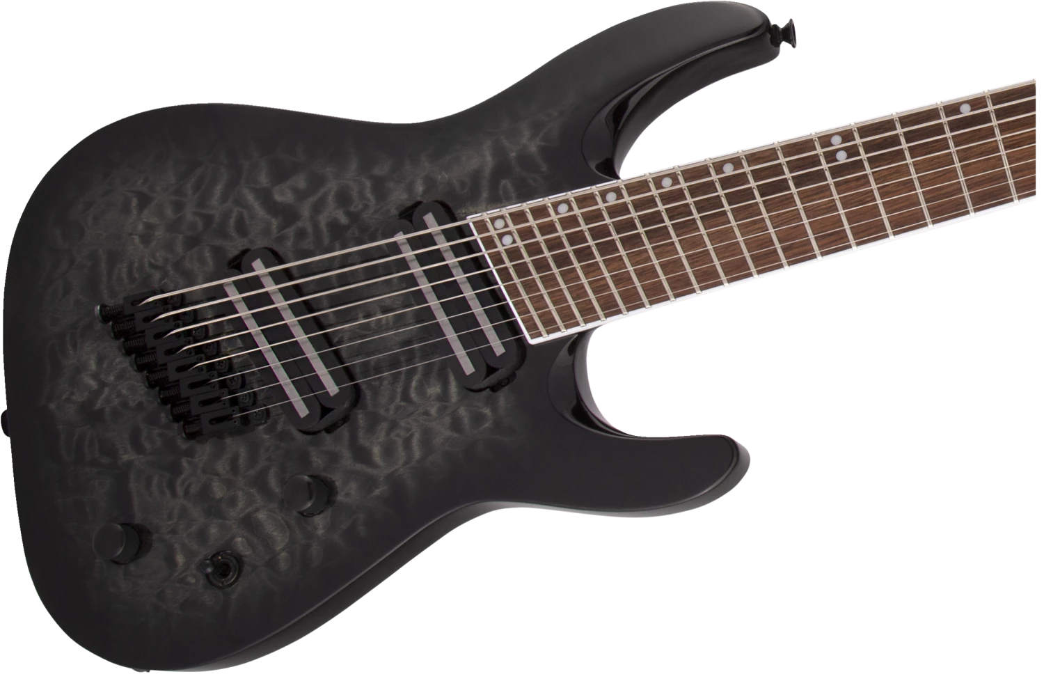 Shred in ergonomic comfort and style with the Jackson® X Series Soloist™ Arch Top SLATX8Q MS. A high-performance evolution of the electric guitar, this 8-string multi-scale model unlocks the possibilities of an instrument by accommodating two scale lengths on one fingerboard, thus improving overall playing comfort, tension and intonation.