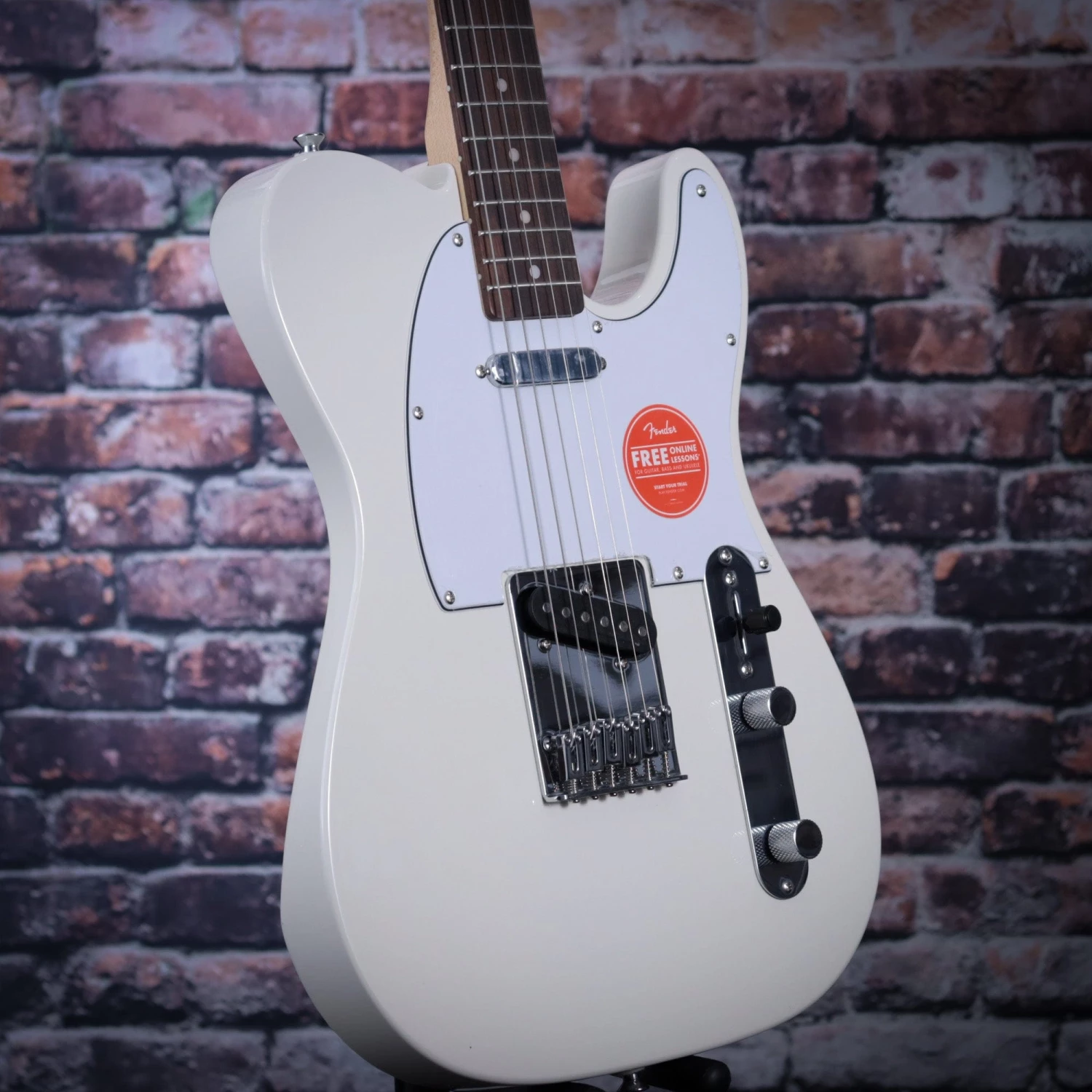 A superb gateway into the time-honored Fender® family, the Squier® Affinity Series™ Telecaster® delivers legendary design and quintessential tone for today’s aspiring guitar hero. This Tele® features several player-friendly refinements such as a thin and lightweight body, a slim and comfortable “C”-shaped neck profile, a string-through-body bridge for optimal body resonance and sealed die-cast tuning machines with split shafts for smooth, accurate tuning and easy restringing. Loaded with dual Squier single-coil Tele pickups with 3-way switching for genre-defying sonic variety, this model is ready to accompany any player at any stage.