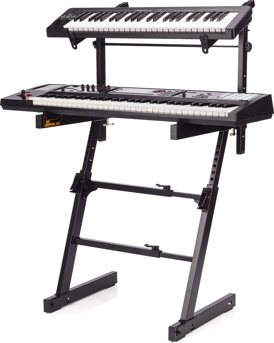 The HERCULES Z-Style Keyboard Stand KS410B is the KS400B with an additional adjustable EZ-LOK Tier for an added keyboard.