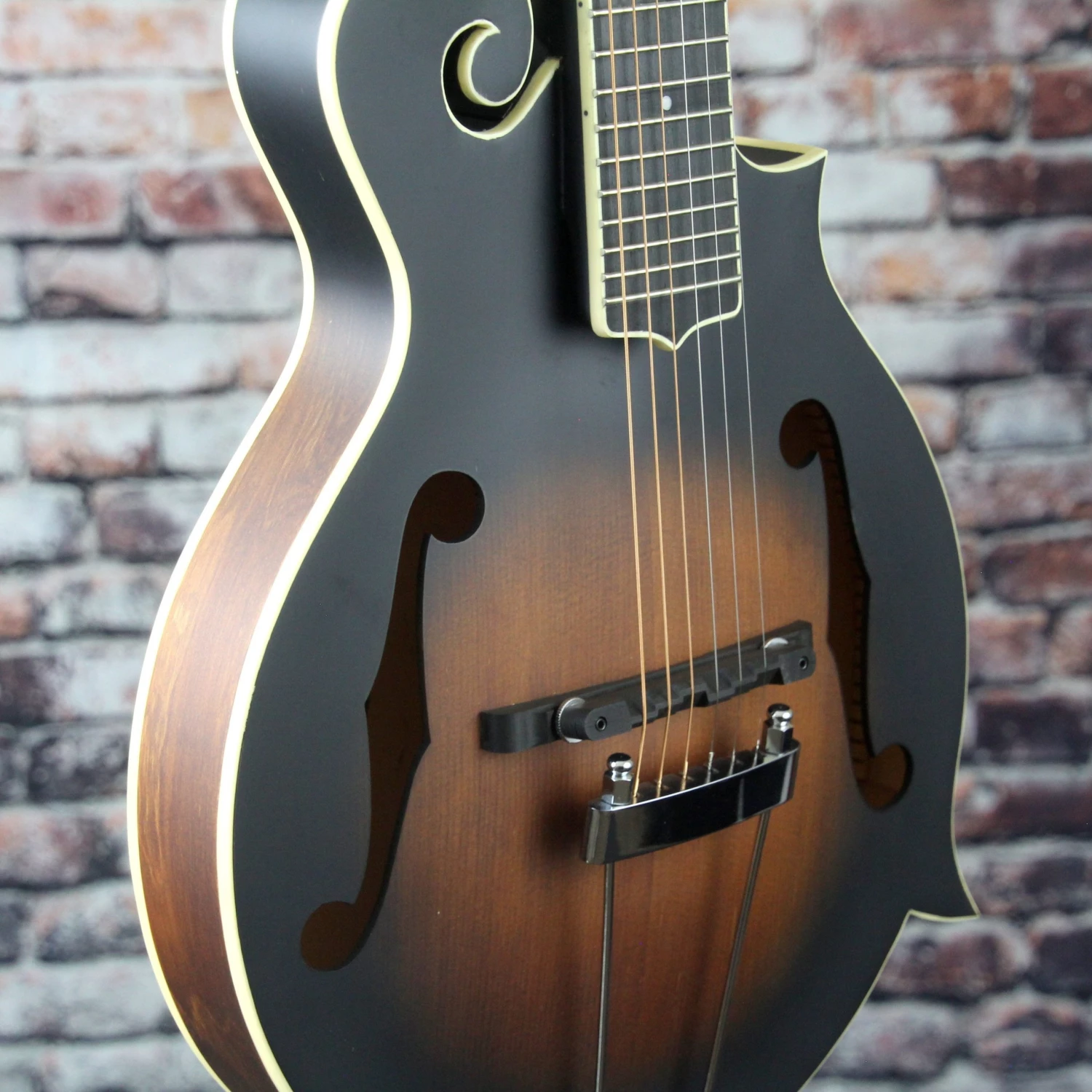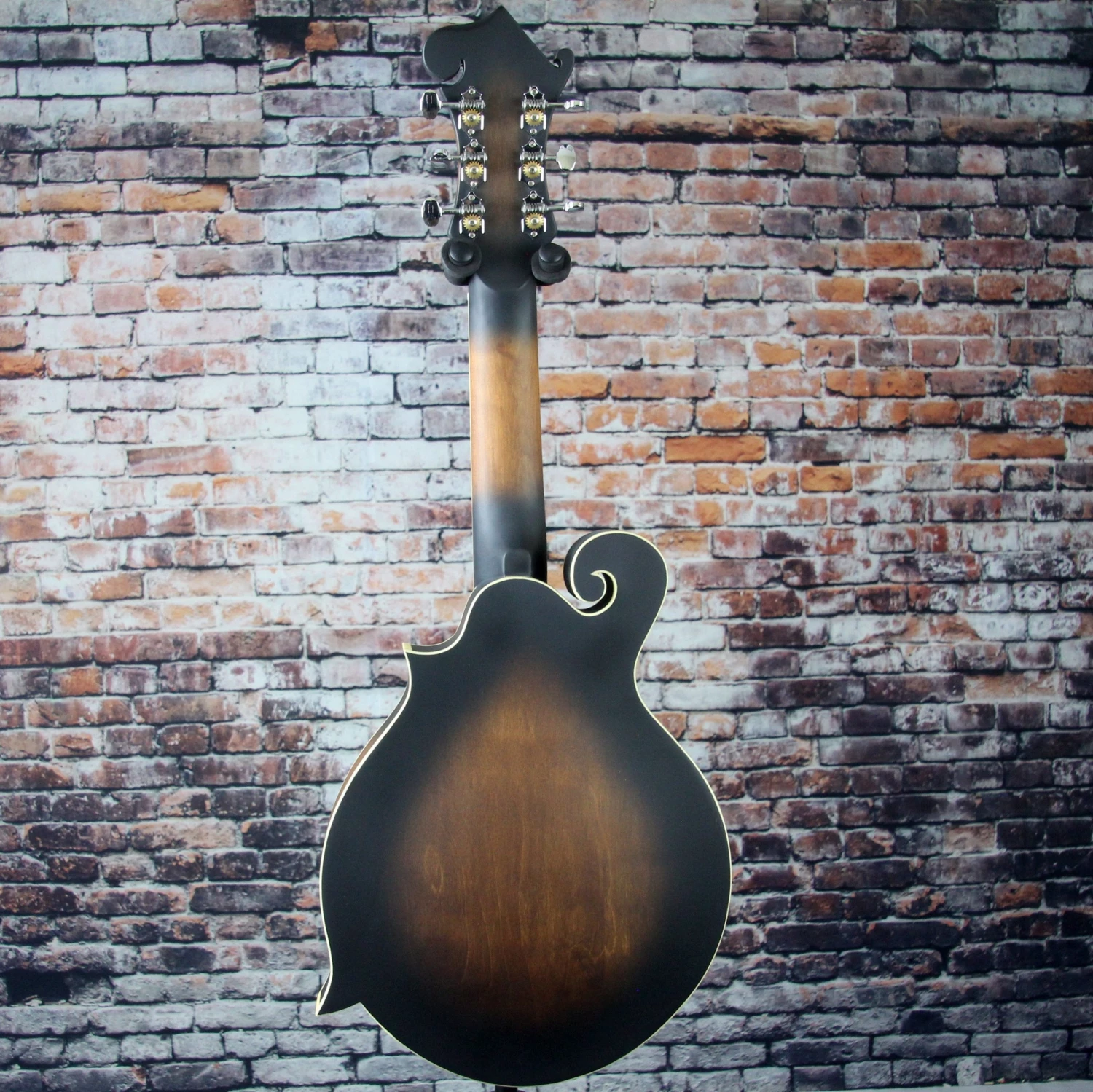 These six- and twelve-string mando-guitars are built on a larger artist- (or F-style) mandola body. The F-6/F-12 mandolin guitar’s larger air chamber offers extended low-end response and the new, wider slim-line neck and longer scale provide added room for fretting those first-position chords. The fretboard is radiused for comfort and the ebony bridge contains a built-in pickup for easy plugged-in picking.